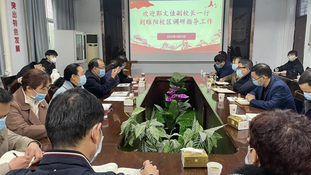 3月25日,副校长郭文佳带领教务处、学生处、实验室建设与管理中心主要负责人到睢阳校区进行考察调研,睢阳校区各学院党政领导班子、辅导员、学生代表参加调研座谈会。