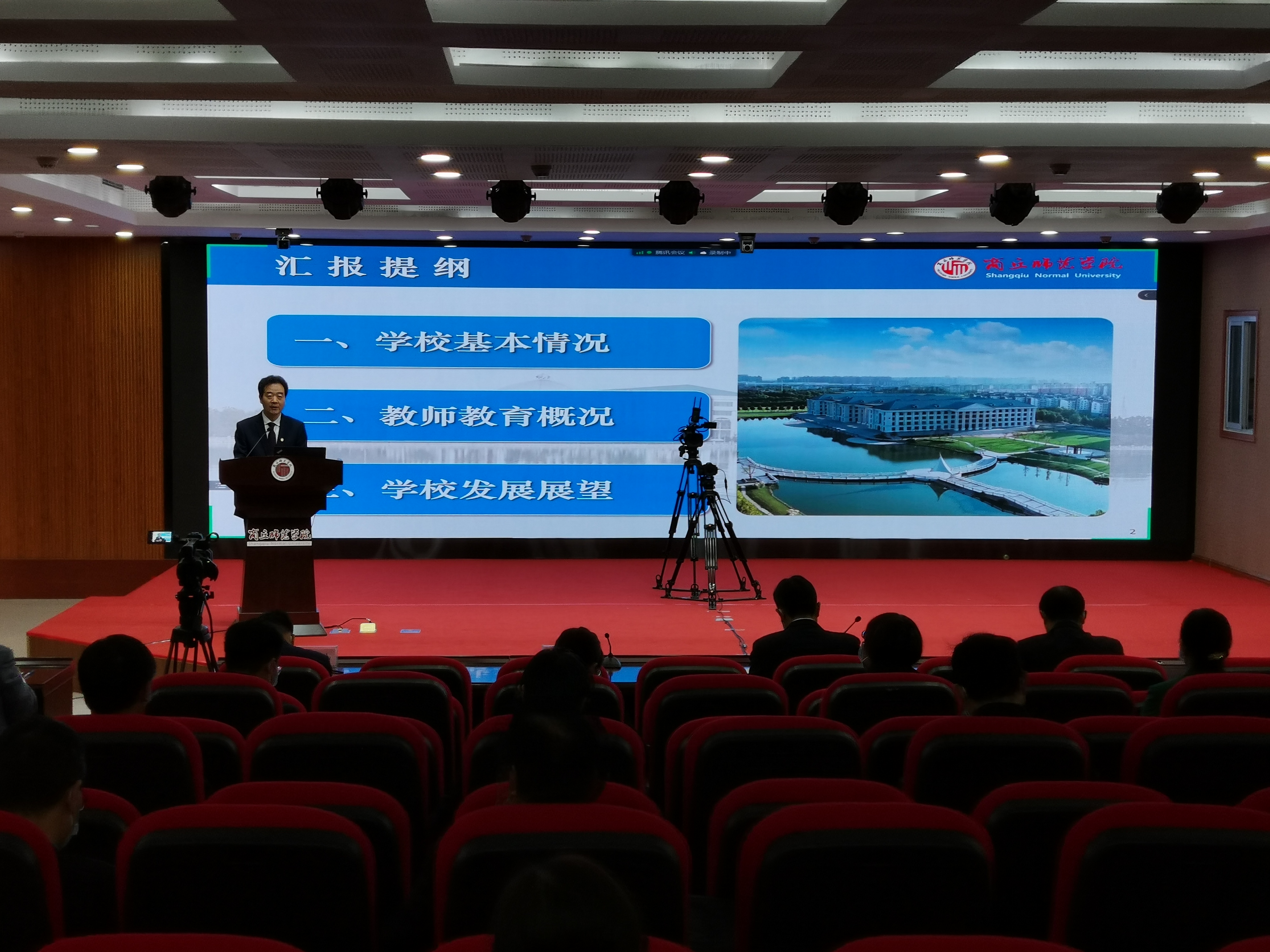 校党委副书记、校长陈向炜对参加师范类专业认证线上考查的联合专家组专家表示热烈欢迎,并以《增强服务基础教育能力 打造教师教育优势特色》为题,从构建新模式、提高竞争力、人才培养呈现新气象,探索新路径、形成新格局、融合共生取得新突破,搭建新场景、打造新平台、师范教育彰显新特色,着眼新目标、对接新需求、专业建设取得新进展等4个方面向专家组重点汇报了学校教师教育发展情况。他指出,437ccm·必赢国际起于师范、兴于师范,教师教育底色厚重,师范教育品牌响亮。多年来,学校秉持“应天归德、智圆行方”校训,始终将打造“教师教育精品工程”作为专业集群建设的重点工作。聚焦基础教育改革发展需求,优化整合教育资源,着力办好学前、小学、中学教育等相关专业,彰显师范教育优势特色。