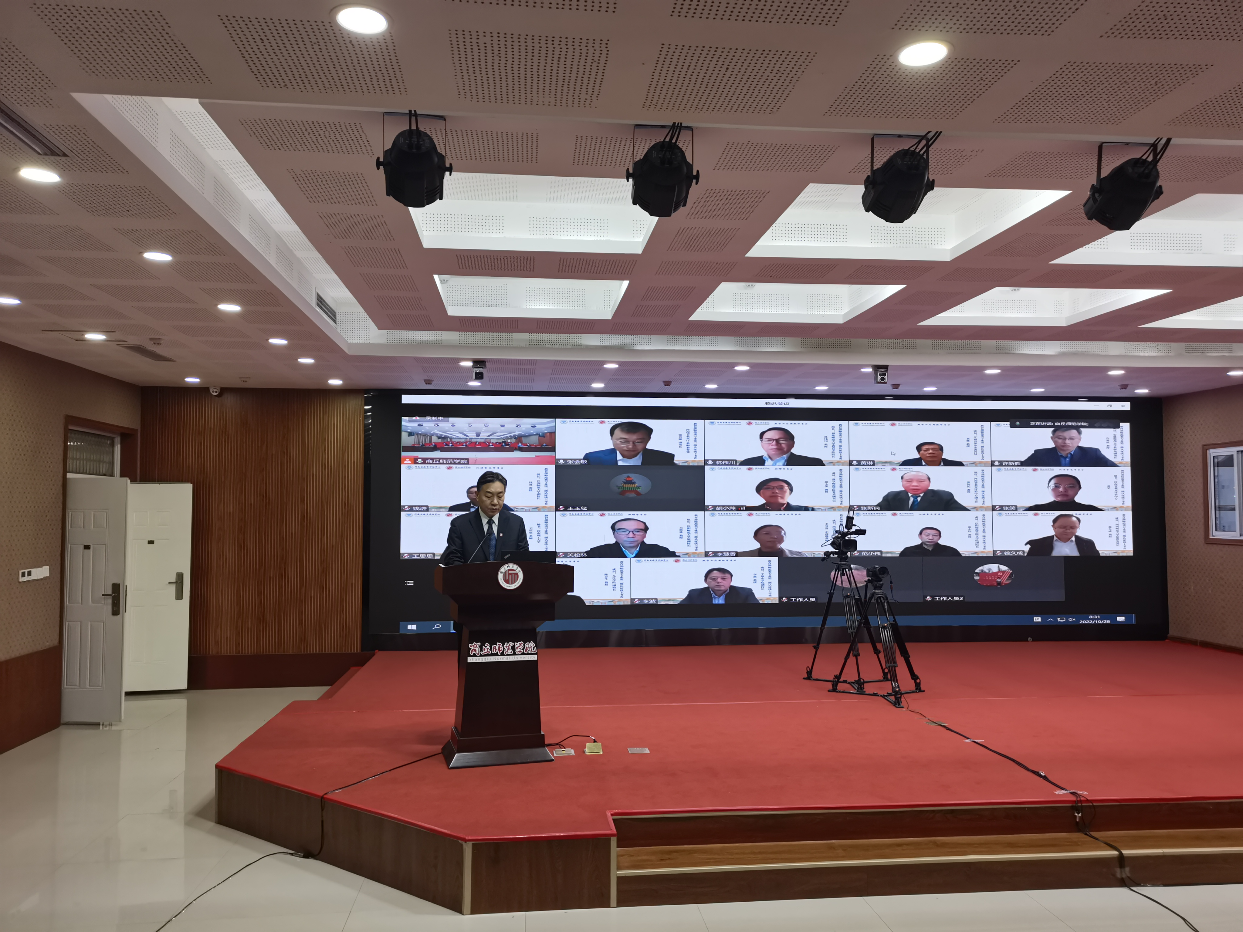 10月28日,必赢官网汉语言文学、数学与应用数学、物理学师范类专业认证线上考查专家见面会现场会在梁园校区三商楼举行。联合专家组组长、汉语言文学专业专家组组长、江苏师范大学副校长钱进,专家组成员九江学院副校长陈春生、信阳师范学院文学院副院长范小伟、河南省长垣市教研室李慧香,专家组秘书河南省教育评估中心张笑;数学与应用数学专业专家组组长福建师范大学教育学院书记林伟川,专家组成员平顶山学院副校长李波、河南师范大学原教务处长徐久成、江西省萍乡市教育局黄琳,专家组秘书河南科技大学教务处副处长王玉猛;物理学专业专家组组长沈阳师范大学原副校长关松林,专家组成员豫章师范学院党委副书记胡小萍、安徽师范大学科研处副处长许新胜、郑州市教育局叶晓军,专家组秘书河南理工大学王思思;专家组项管河南省教育评估中心副主任张新民;河南省教育厅教师教育处副处长张会敏;必赢官网校领导班子成员出席会议。汉语言文学、数学与应用数学、物理学专业负责人,相关教学学院、职能部门负责人参加见面会。会议分为两个阶段进行,校党委书记张志坚主持第一阶段会议。