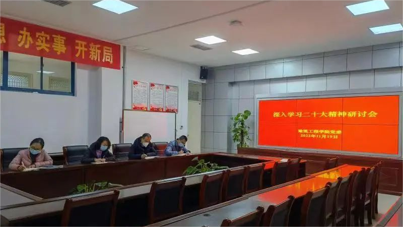 学习宣传贯彻党的二十大精神是当前和今后一个时期的首要政治任务。建筑工程学院党委精心组织周密安排,扎实推进学习宣传贯彻活动不断走深走心走实,确保党的二十大精神在学院落地生根、开花结果。一是迅速传达学习,及时跟进,领导班子当好表率,坚持系统学习和专题研讨、确保党支部全覆盖、全校师生全覆盖。二是抓好宣讲阐释,以入党积极分子中级培训党课为载体,由党委书记、副书记宣讲党的二十大精神,切实做到学深悟透、入脑入心。三是广泛深入宣传,充分发挥宣传媒体和宣传平台优势,开展全方位、多角度、立体式的宣传报道。四是结合实际贯彻,把学习贯彻党的二十大精神,与贯彻落实习近平总书记视察延安、安阳重要讲话重要指示贯通起来,进一步把准方向、完善思路、强化举措,推动学院事业高质量发展。
