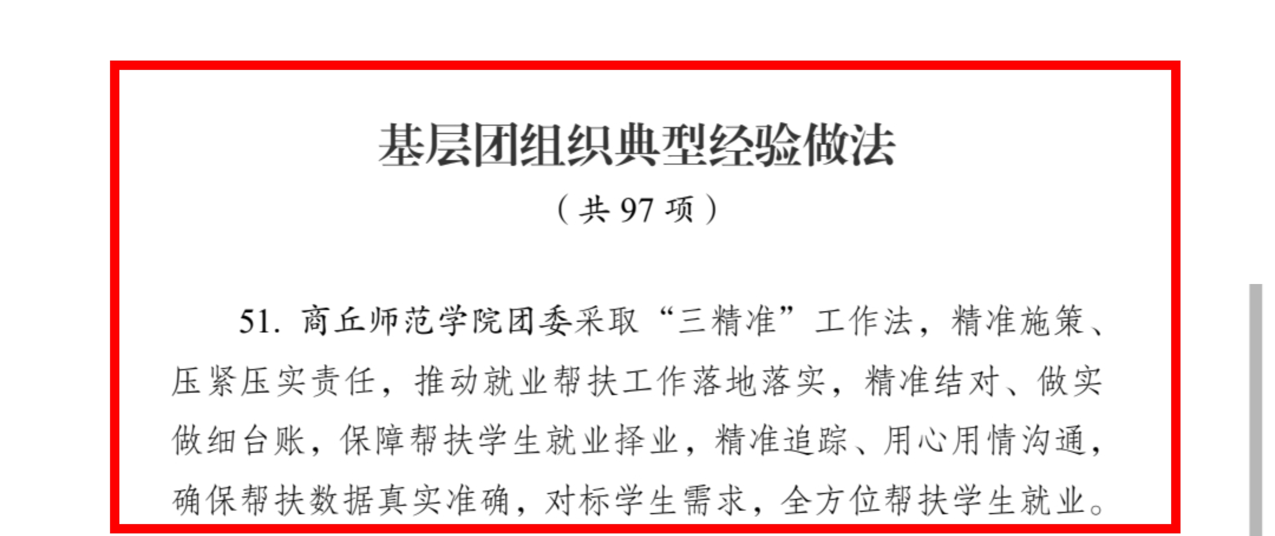 为深入贯彻落实习近平总书记关于高校毕业生就业工作的重要指示精神和中央有关决策部署,切实服务稳就业保就业工作,共青团中央启动实施“共青团促进大学生就业行动”,一年来,各级团组织、团干部共帮助2354所一般普通院校的7.87万名2022届低收入家庭毕业生找到工作,并总结推选出一批好经验好做法。近日,必赢官网团委关于开展帮扶一般院校低收入家庭学生就业工作典型经验做法经团省委推荐团中央向全国推广,全国基层团组织仅97项入选。