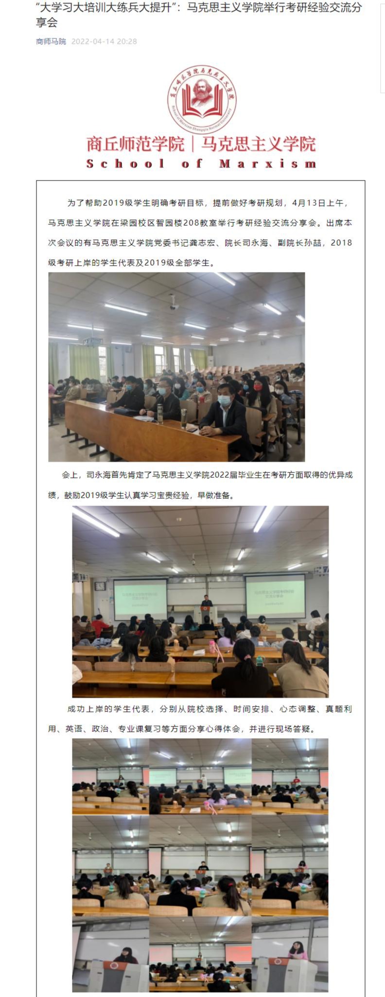马克思主义学院在校党委领导下,高度重视毕业生就业工作,始终以服务经济社会发展为核心,以实现充分高质量就业为目标,落实就业“一把手”工程,扎实推进毕业生就业工作,就业结构持续优化,就业质量稳步提升,2022届毕业生总体就业率96%,毕业生就业质量调查问卷完成率93%,均排名全校第一,44%考研成功继续深造,41%成功应聘公务员、教师等专业契合度高的岗位,实现了高质量就业,并被商丘电视台作为推动毕业生就业典型进行了宣传报道,广受社会赞誉。