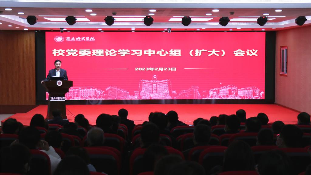 2月23日,学校召开党委理论学习中心组(扩大)会议,专题学习党的二十大精神和全国全省经济形势。校党委理论学习中心组成员、全体正处级干部、各基层党委(党总支)副书记、各学院科研副院长、省市人大代表、各民主党派负责人、经济与管理学院教师代表和辅导员代表参会。会议由党委书记张志坚主持。