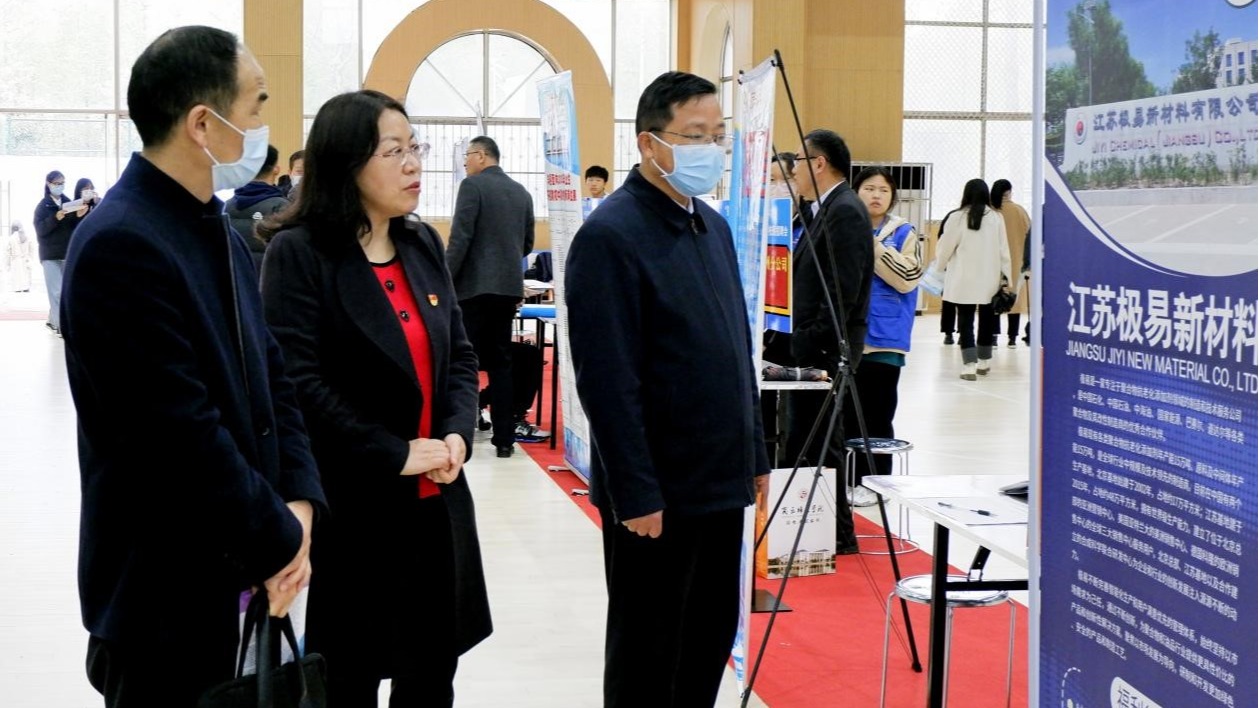 招聘会上,程功鹏、徐州市人力资源就业管理中心主任卢丰与用人单位、毕业生亲切交流,了解企业人才需求,鼓励毕业生积极就业。