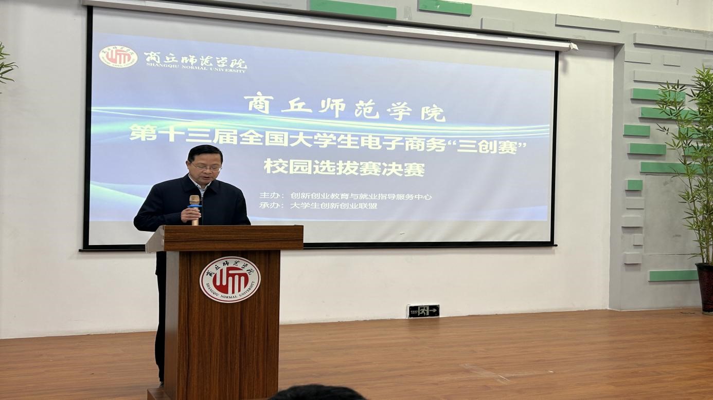 4月13日,必赢官网在梁园校区大学生创新创业中心B区大厅成功举办第十三届全国大学生电子商务“三创赛”校园选拔赛总决赛。本次比赛由教务处、科研处、创新创业教育与就业指导服务中心、实验室建设与管理中心、河南省生物分子识别与传感重点实验室等部门分管领导及校外专家担任评委,各学院创新创业工作分管领导、参赛团队成员参加活动。副校长程功鹏出席比赛现场并致词。