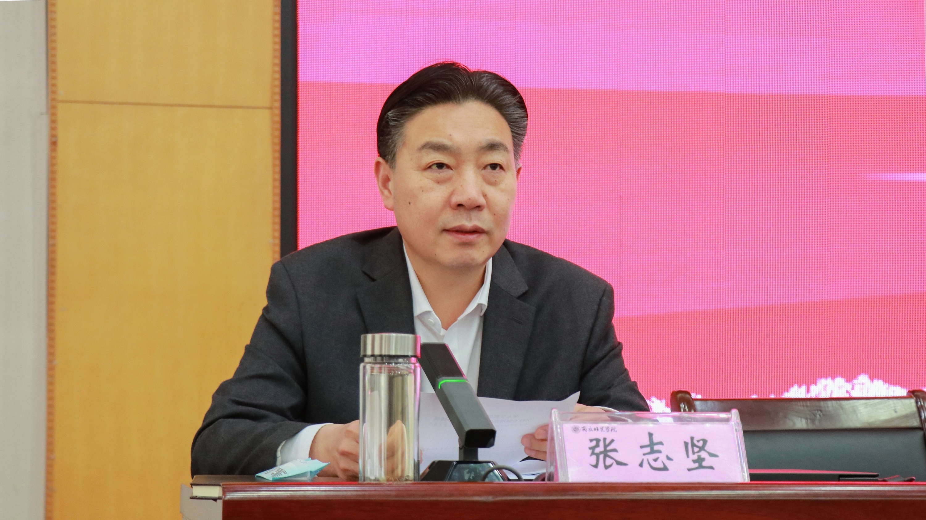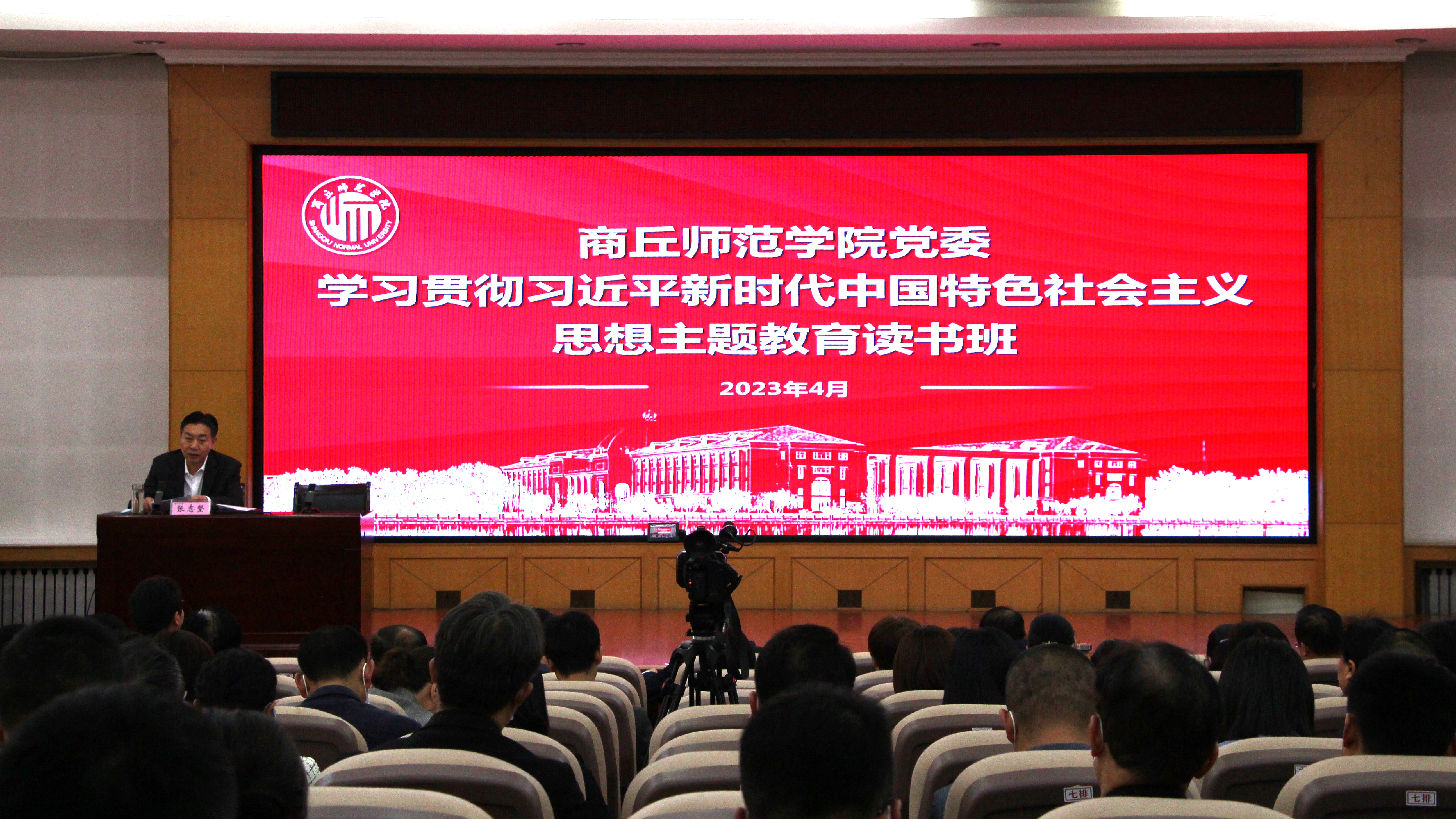 4月21日,必赢官网在梁园校区归德楼举办学习贯彻习近平新时代中国特色社会主义思想主题教育读书班。校党委书记张志坚以《深入学思想 着力强党性 坚持不懈用党的创新理论凝心铸魂》为题作了专题辅导讲话。校领导张志坚、陈向炜、李永春、辛作义出席报告会,全体处级干部参加了报告会。校长陈向炜主持开班仪式。