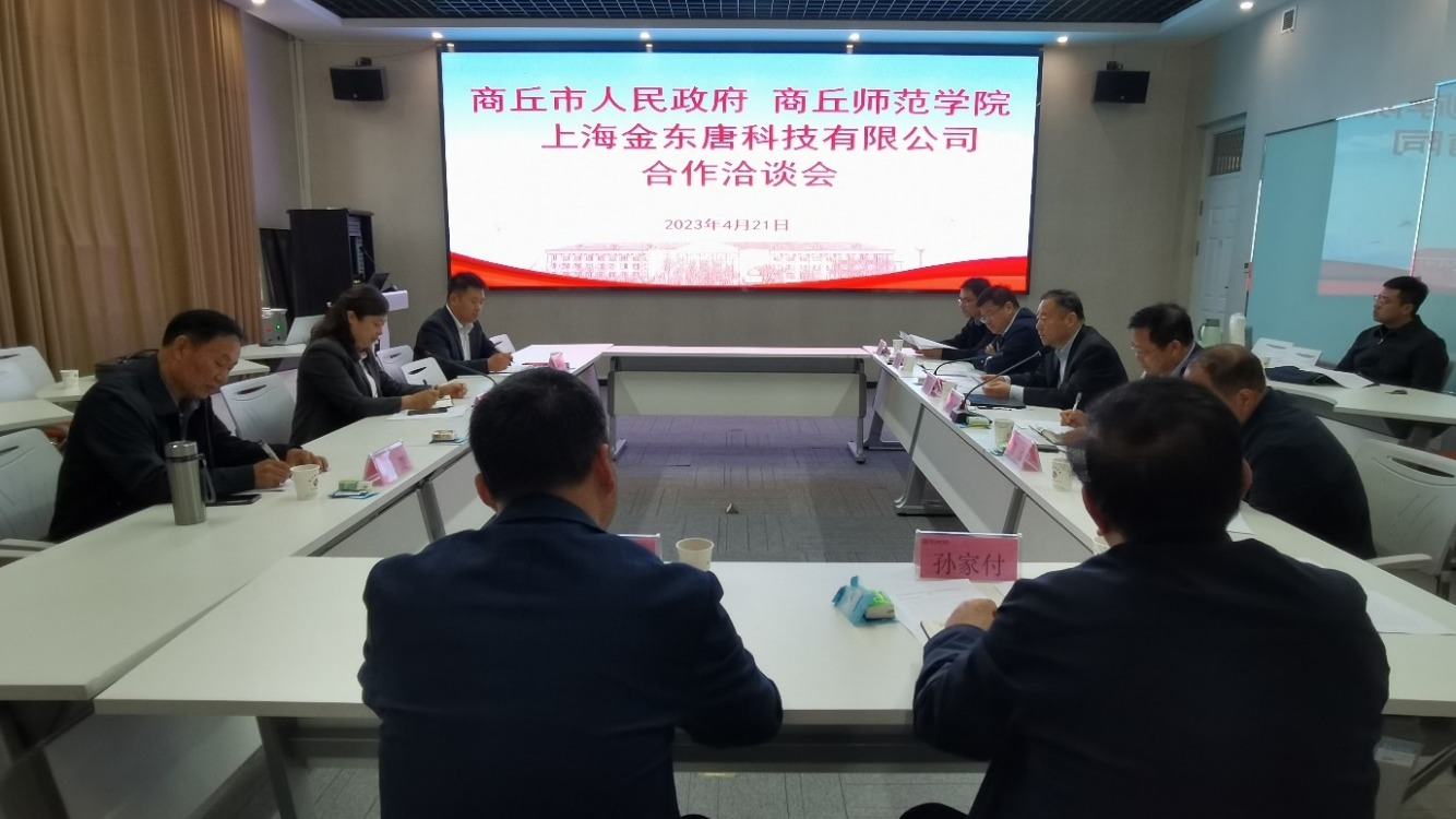 4月21日,必赢官网与商丘市人民政府、上海金东唐科技有限公司举行校地校企合作洽谈会。市政府党组成员梁万涛、工业和信息化局副局长徐家修、市政府办公室副主任刘远、商丘市民营经济发展促进中心(商丘市企业服务中心)副主任曾宪瑞,上海金东唐科技有限公司副总经理朱建玫、上海金东唐河南区域负责人焦润友,校地合作与服务中心主任和电子电气工程学院相关负责人参加洽谈会。会议由副校长程功鹏主持。