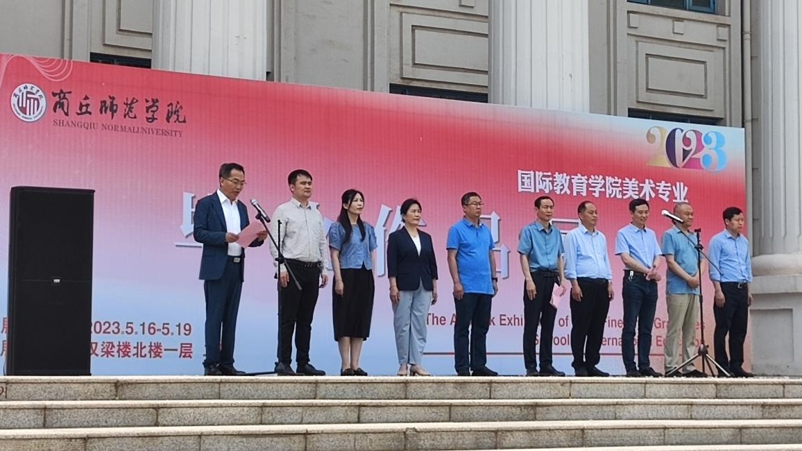 5月16日上午,必赢官网2023届美术专业毕业生作品展在汉梁楼北侧开幕。副校长张箭、美术学院和国际教育学院领导班子成员出席开幕式,国际教育学院师生代表参加开幕式。开幕式由国际教育学院院长周运增主持。