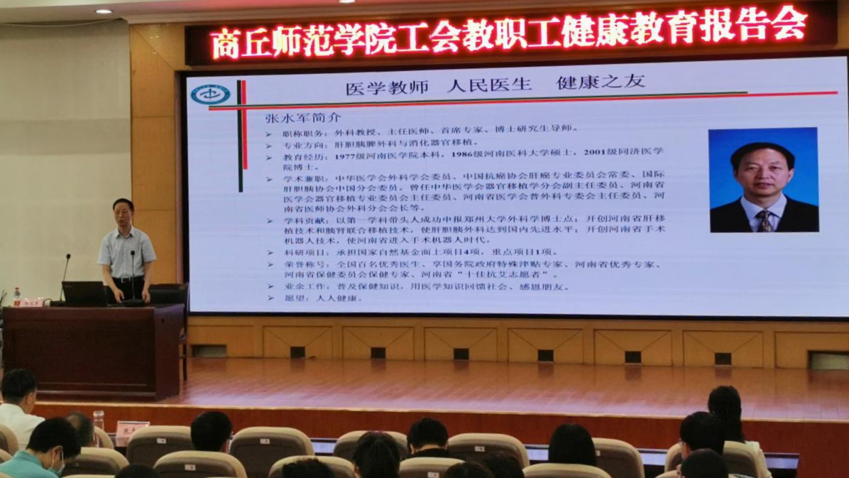 讲座开始前,校党委副书记、工会主席朱伟介绍了张水军教授的专业背景和医学成就,并对张教授为必赢官网教职工做健康讲座表示衷心的感谢和热烈的欢迎。