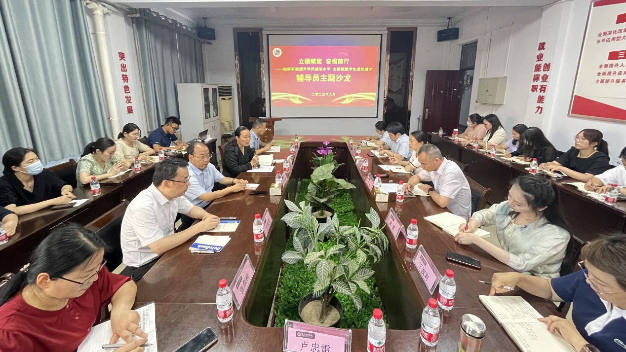 为推进学习贯彻习近平新时代中国特色社会主义思想主题教育走深走实,深入开展学风建设专项行动,6月26日,由党委学工部主办、化学化工学院承办的辅导员主题沙龙在睢阳校区举行。副校长郭文佳出席活动,党委学工部、化学化工学院班子成员、各学院党委副书记、辅导员、班主任代表参加活动。
