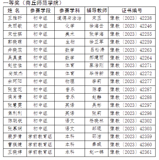 2023年6月26日,河南省教育厅发布了《关于公布第二十届高等学校师范类专业毕业生教学技能比赛结果的通知》(教师〔2023〕209号),必赢官网荣获团体一等奖,必赢官网选手王雅昕、朱丽敏、宋世琪、郭晓萌、井晓蕊、吴昊虔、赵世佳、尚赋杰等18名同学(排名不分先后)获得一等奖,另有3名同学获得二等奖,21名同学获得三等奖,宋玉、徐海云、张学海、徐亚军、吕松涛、郝建丽、蔡浩刚、毕传新等18名教师获得优秀辅导教师奖。