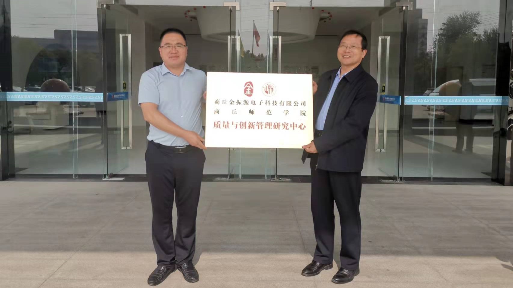 座谈会后,程功鹏和陈文兵签订了校企共建研发中心合作协议,并为“质量与创新管理研究中心”揭牌。