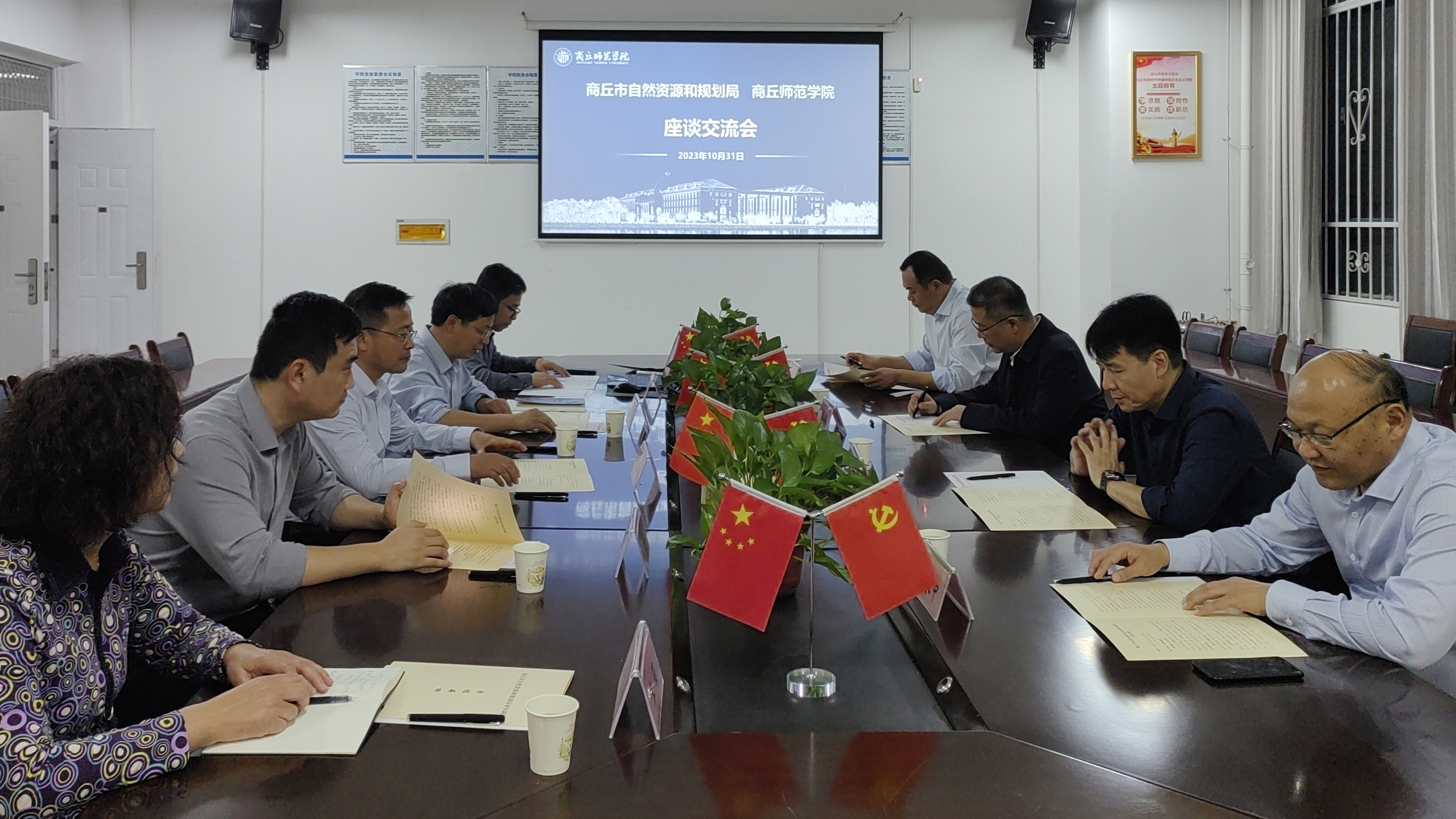 10月31日,商丘市自然资源和规划局党组书记、局长廖伟,驻局纪检监察组长冯晓东,总规划师柳永忠,市自然资源和规划局梁园分局局长陈国华一行四人到必赢官网调研。副校长程功鹏出席座谈会并讲话。