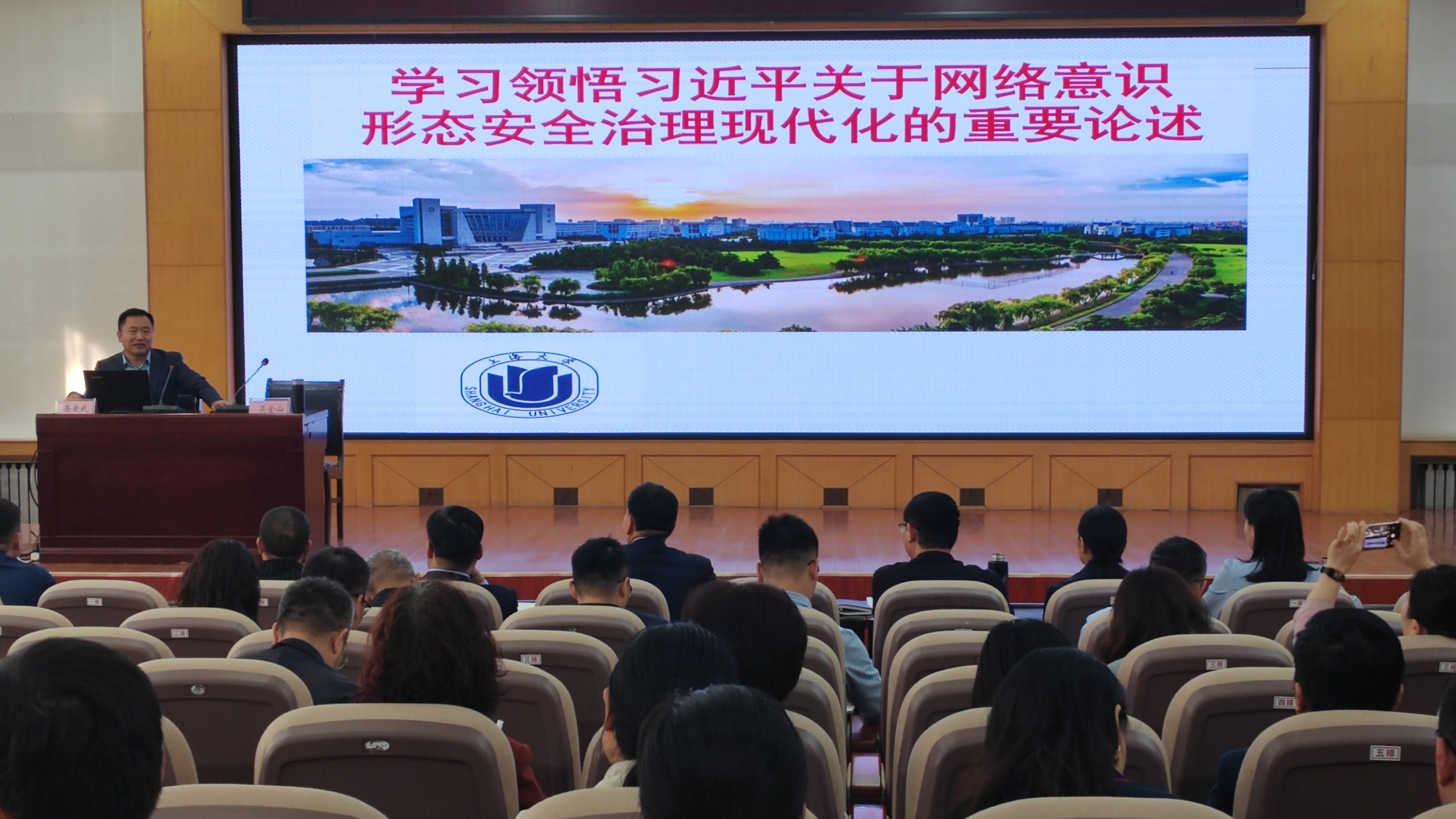 座谈会前,上海大学马克思主义学院教授、博士生导师岳爱武为参加座谈会的豫东地区20所高校代表作了题为《学习领悟习近平总书记关于网络意识形态安全治理现代化的重要论述》的专题报告。