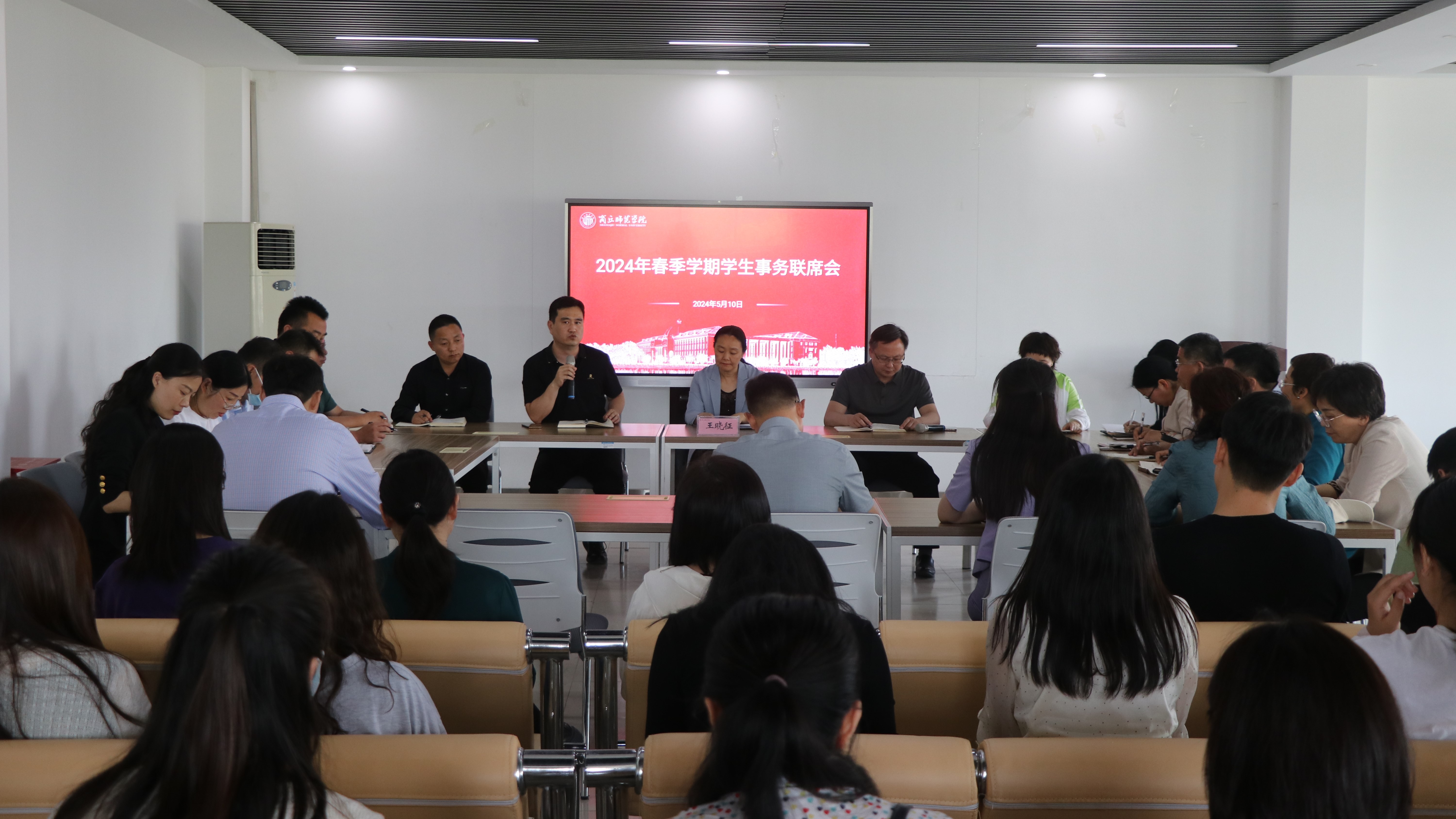 5月10日,必赢官网在梁园校区学生事务服务中心召开2024年春季学期学生事务联席会,副校长王晓征出席会议。