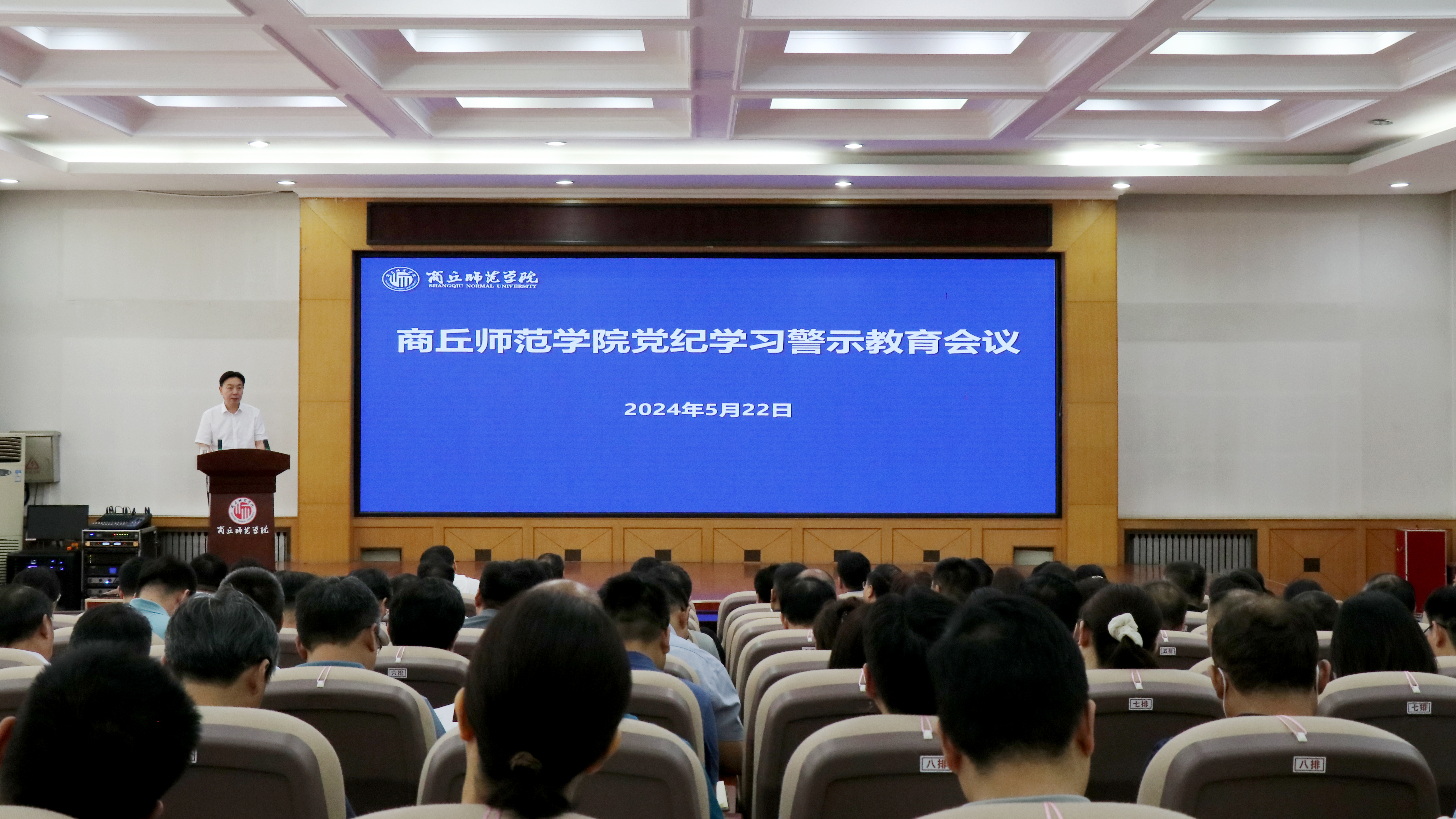 5月22日,必赢官网党纪学习教育警示教育会议在梁园校区归德楼召开,校党委书记张志坚出席并讲话,校长陈向炜、校领导吴金山、郭文佳、程功鹏、翟滨出席。校纪委书记、监察专员何瑞强主持会议。全体中层干部参加了会议。