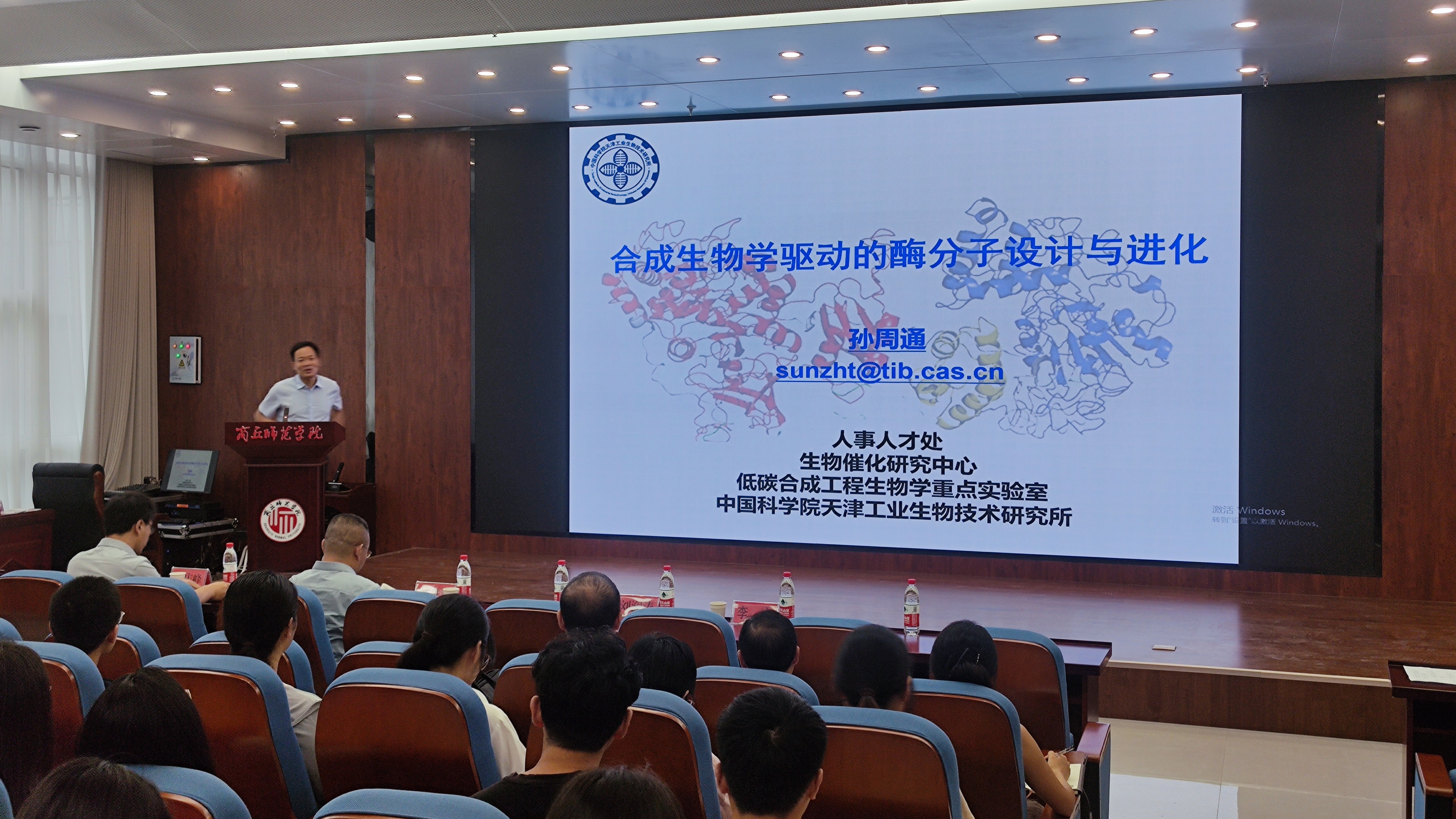 7月27日,受生物与食品学院邀请,中国科学院天津工业生物技术研究所孙周通教授作了题为《合成生物学驱动的酶分子设计与进化》的学术报告。副校长刘澜涛,生物与食品学院、化学化工学院部分师生聆听了报告。报告由生物与食品学院院长周庆峰主持。