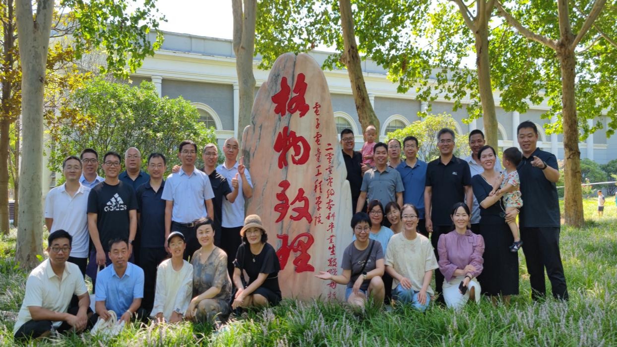 座谈会后,师生们在欢乐祥和的氛围中为此次校友捐赠的纪念石揭幕并合影留念。