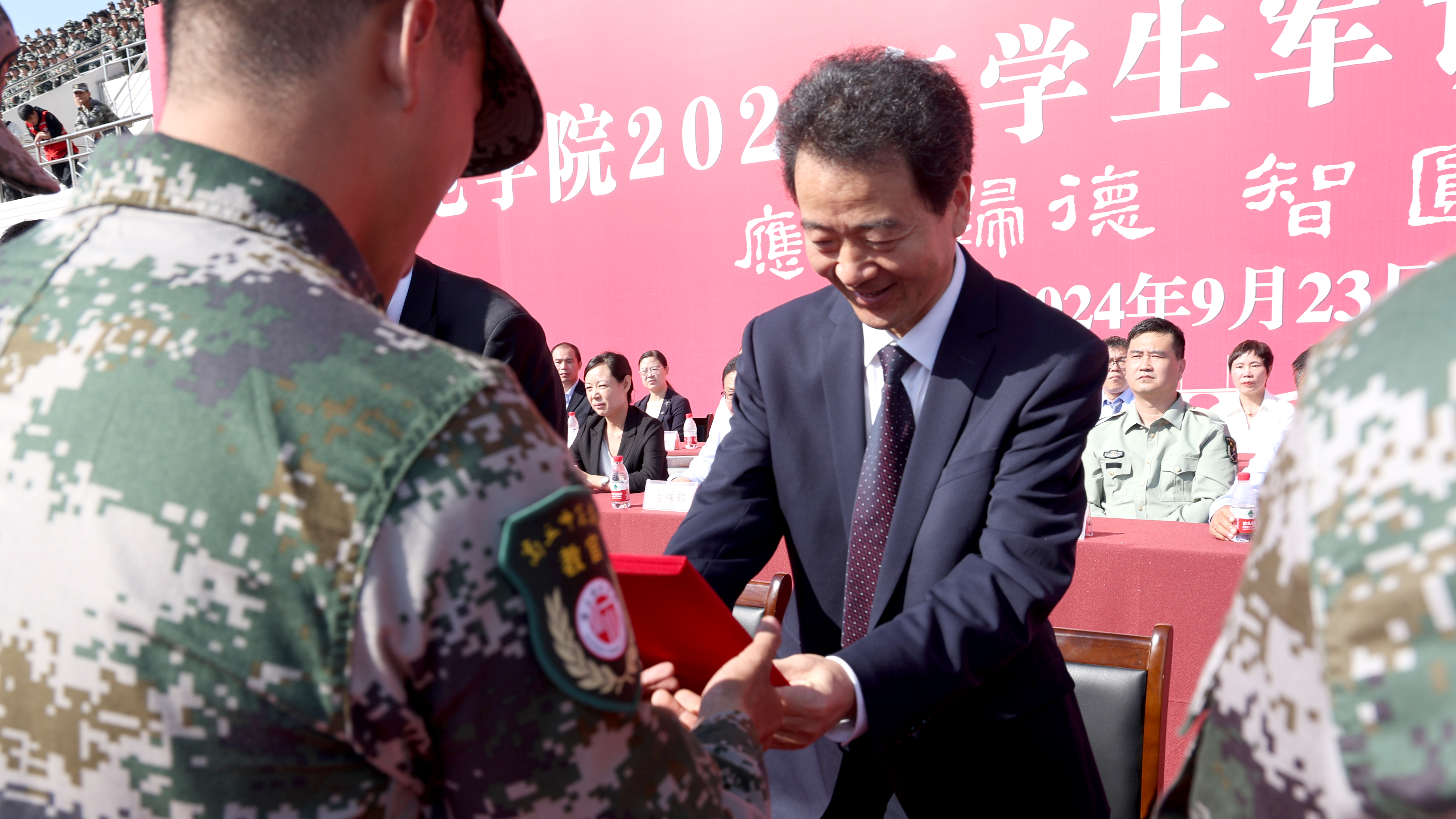 会上,校党委副书记吴金山宣读了《关于表彰2024年学生军训先进集体和个人的决定》。校领导为军训优秀连队、优秀指导员、优秀教官颁发了荣誉证书。