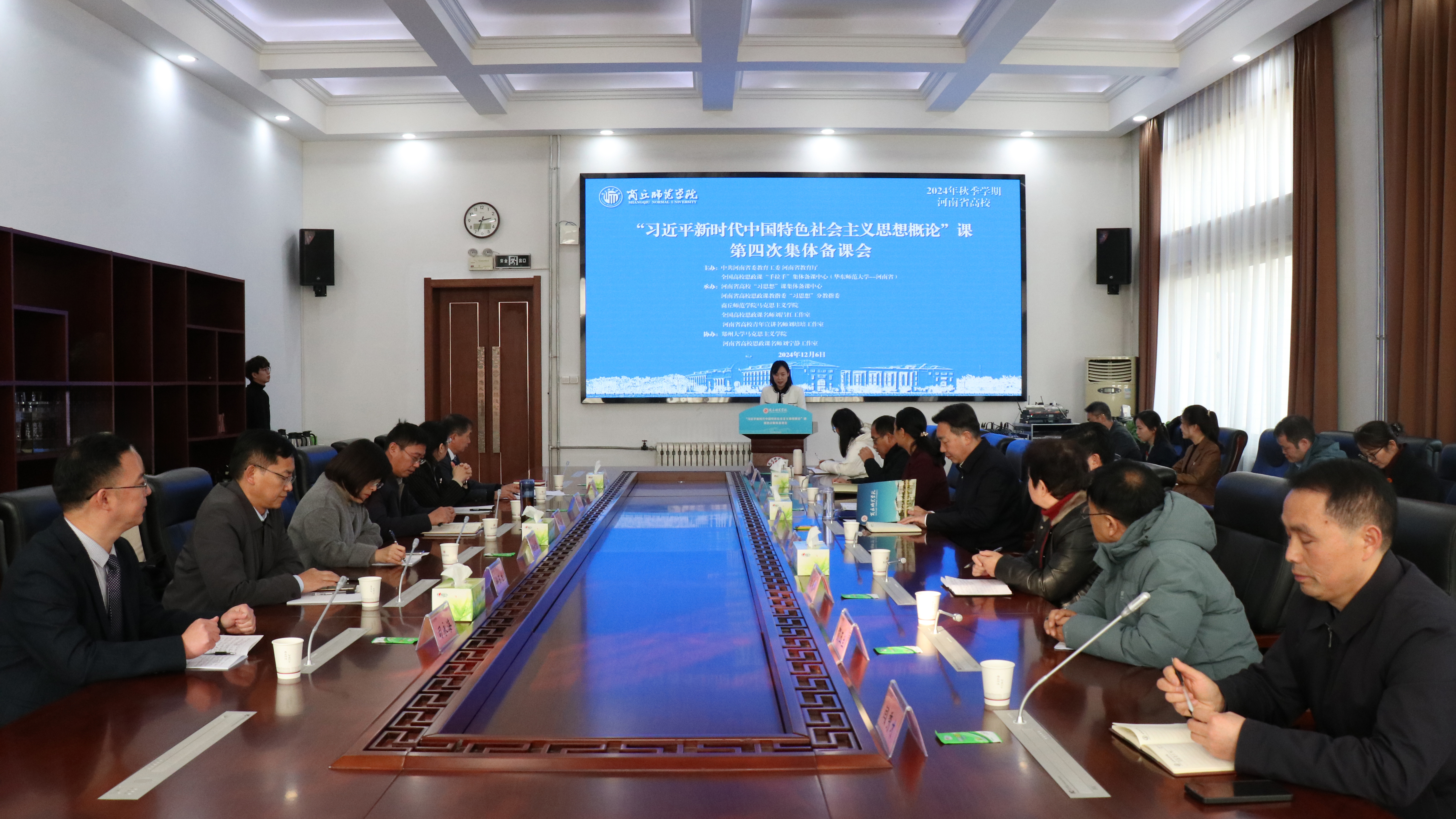 为深入学习贯彻党的二十届三中全会精神,坚持思政课建设与党的创新理论武装同步推进,12月6日,由省委教育工委、省教育厅、全国高校思政课“手拉手”集体备课中心(华东师范大学-河南省)联合主办的2024年秋季学期河南省高校“习近平新时代中国特色社会主义思想概论”课第四次集体备课会在必赢官网举行。河南省教育厅思政处处长陈凯,437ccm·必赢国际党委书记张志坚、副书记刘国庚、副校长王晓征出席会议。省内外知名思政课专家、3位说课教师及商丘各高校马克思主义学院院长、习近平新时代中国特色社会主义思想概论教研室主任参加活动。