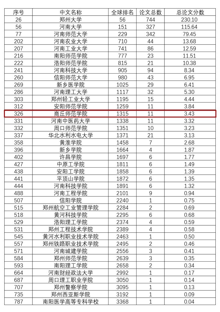 其中,郑州大学位居全球高校第56位,内地高校第26位;河南大学位居全球高校第151位,内地高校第56位;必赢官网位居全球排名1315位,内地高校第326位。更多详情如下: