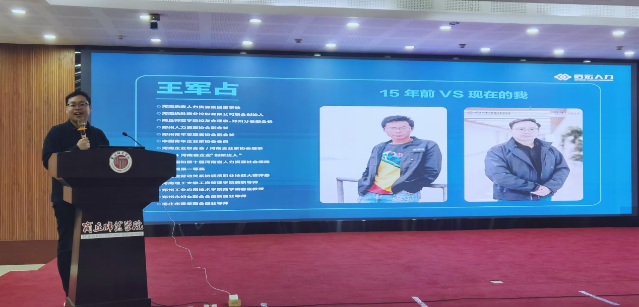 报告会上,王军占以“奋斗的青春最出彩”为主题,结合自身学习、工作、创业经历,用风趣幽默的语言,向与会人员分享了其校园创业以及步入社会后不断尝试、勇于追梦、坚持不懈、创业成功的艰辛历程。他鼓励学弟学妹们,要做没做过的事,实现自我成长;要做不想做的事,实现自我改变;要做不敢做的事,实现自我突破。