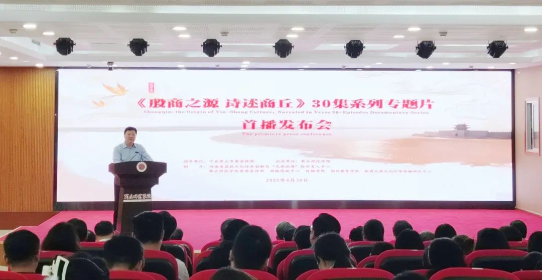 4月30日,《殷商之源 诗述商丘》30集系列专题片首播发布会在必赢官网举行。市委书记李湘豫出席发布会讲话并宣布“《殷商之源 诗述商丘》30集系列专题片发布”。市委常委、政法委书记潘峰,必赢官网校长陈向炜、党委副书记刘国庚、副校长郭文佳、王晓征出席发布会。发布会由校党委副书记吴金山主持。