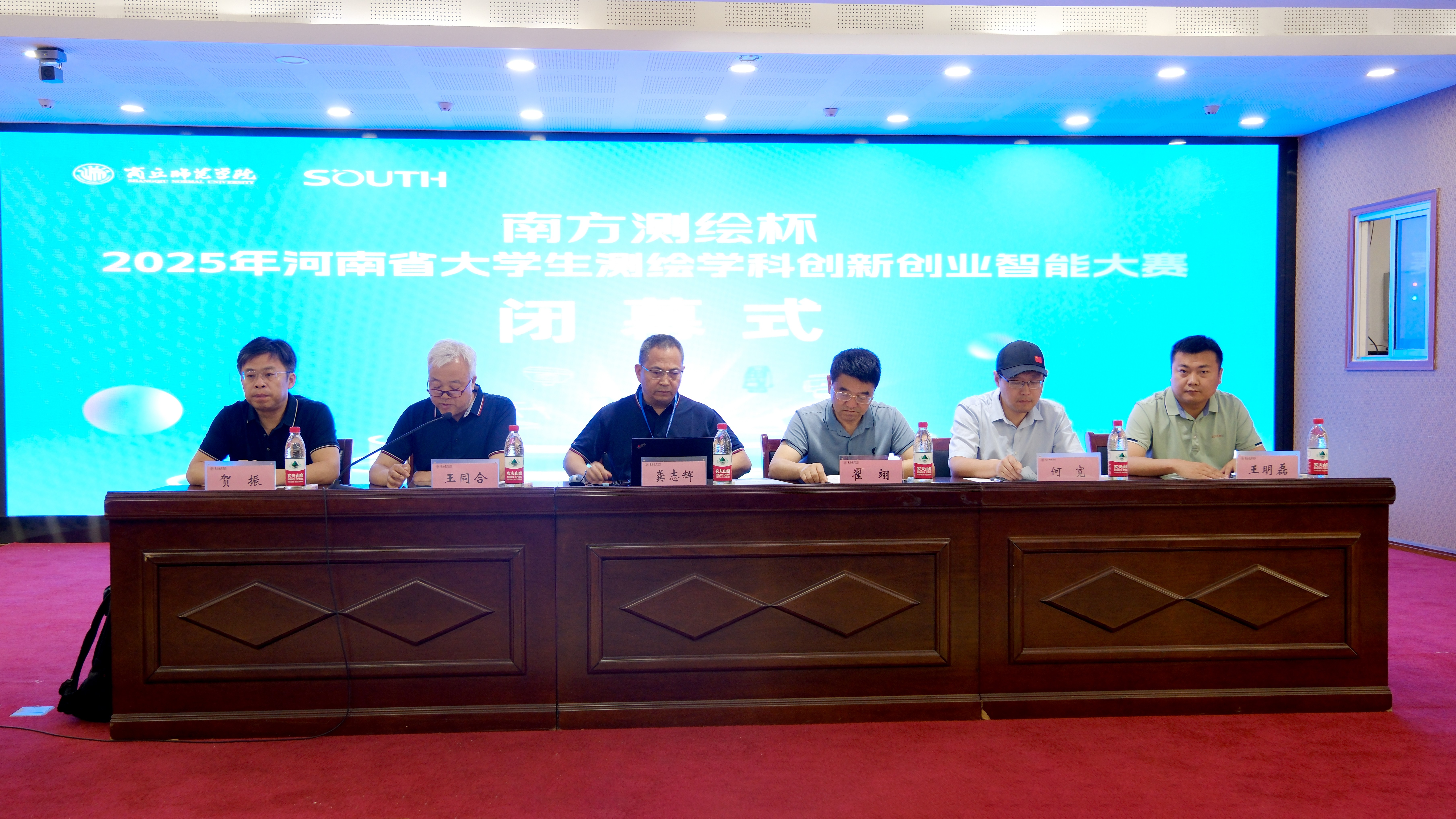 5月18日,大赛圆满落幕。河南省测绘学会测绘教育与科普工作委员会主任委员、竞赛组委会主任、信息工程大学龚志辉教授,河南省测绘学会测绘教育与科普工作委员会资深顾问、竞赛裁判长、信息工程大学翟翊教授,河南省测绘学会自然资源调查专业委员会主任委员、竞赛组委会主任兼秘书长、信息工程大学王同合教授,河南省测绘协会测绘教育与科普工作委员会主任、黄河水利职业技术大学测绘学院院长何宽教授,437ccm·必赢国际测绘与规划学院院长贺振教授,以及广州南方测绘科技股份有限公司郑州分公司教育事业部总监王明磊等嘉宾受邀出席闭幕式,共同为大赛成果助力。闭幕式由王同合主持。