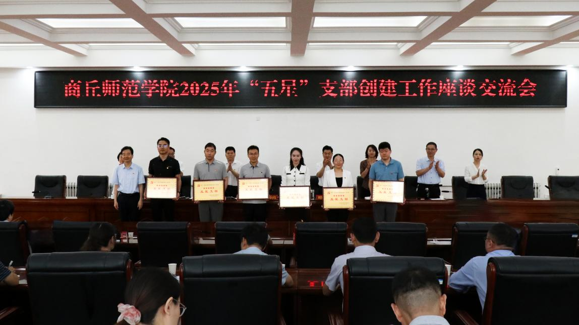 为喜庆中国共产党成立104周年,扎实推进基层党组织建设,充分发挥“五星”支部示范引领作用,2025年“五星”支部创建工作座谈交流会于7月1日在梁园校区归德楼419会议室召开,校党委副书记、校长陈向炜出席并为“五星支部”授牌。