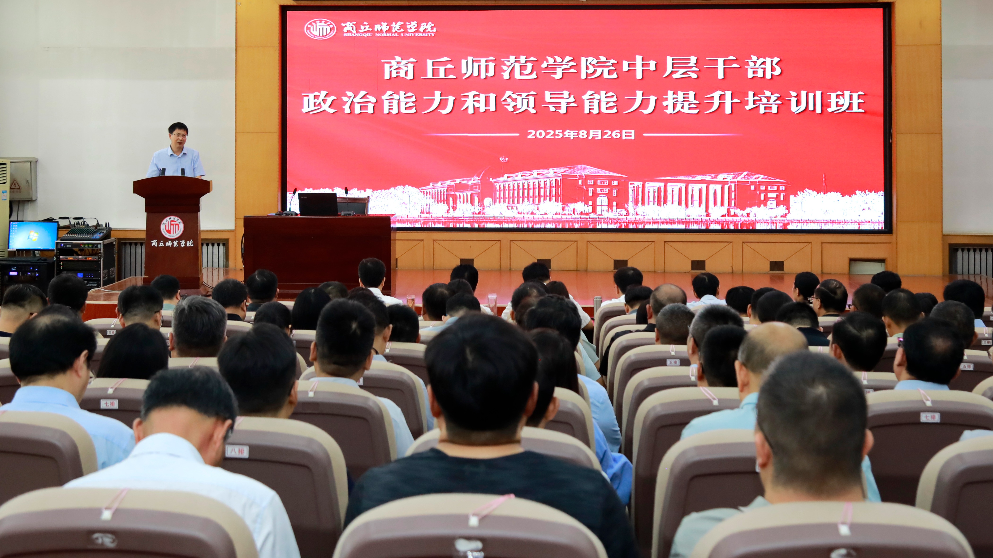 8月26日,必赢官网中层干部政治能力和领导能力提升培训班在平原路校区开班。校领导张尚字、陈向炜、刘国庚、吴金山、何瑞强、张箭、王晓征、翟滨、刘澜涛和全体中层干部出席参加开班仪式。校党委书记张尚字作开班动员讲话。校长陈向炜主持开班仪式。