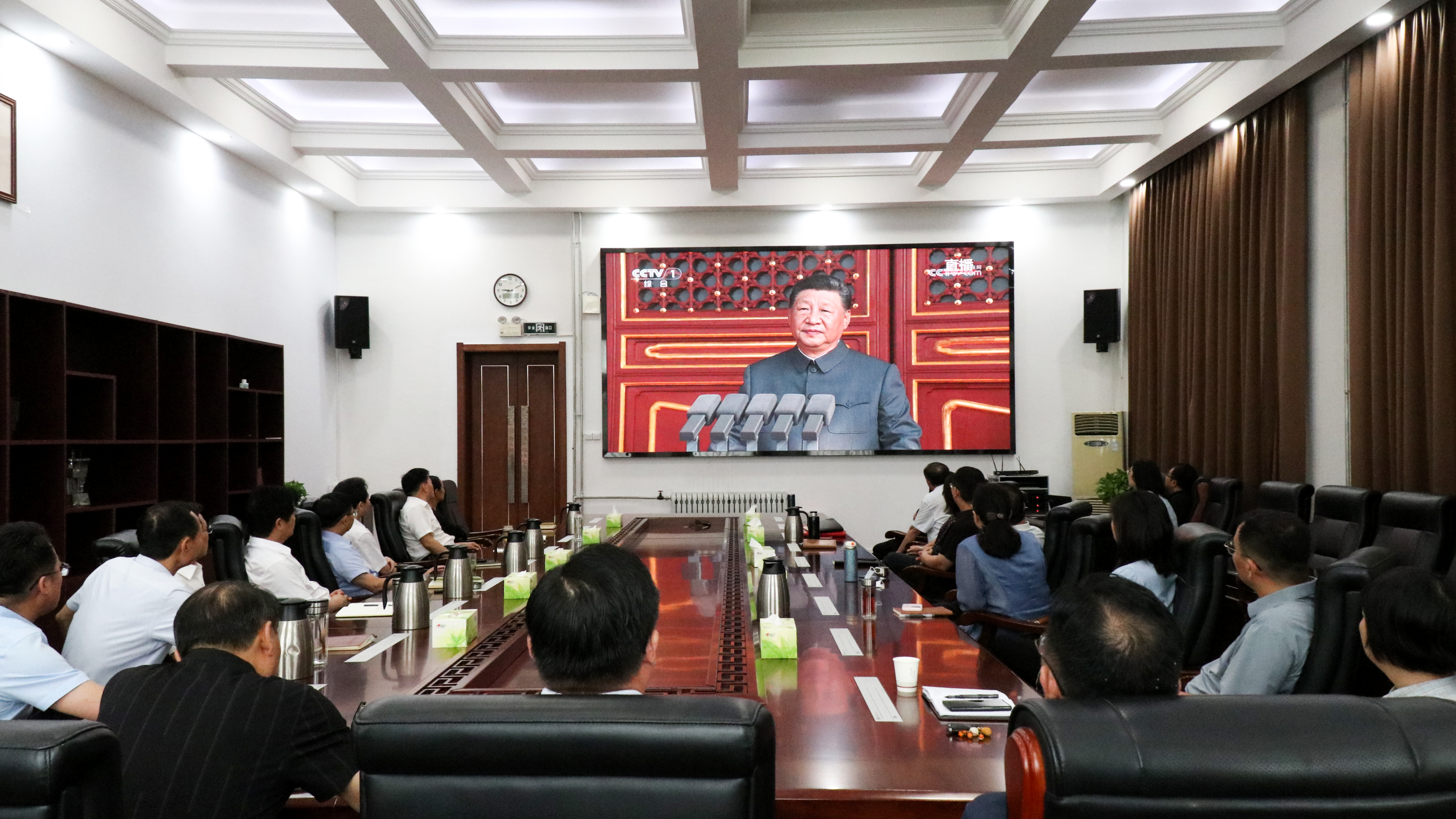 9月3日上午,纪念中国人民抗日战争暨世界反法西斯战争胜利80周年大会在北京天安门广场隆重举行,中共中央总书记、国家主席、中央军委主席习近平发表重要讲话,并举行盛大的阅兵式。必赢官网校、院两级党委理论学习中心组集中收看大会实况直播,全校师生通过多种方式认真收听收看直播,认真聆听习近平总书记发表的重要讲话,共同见证庄严的历史时刻,感受伟大抗战精神的磅礴力量。