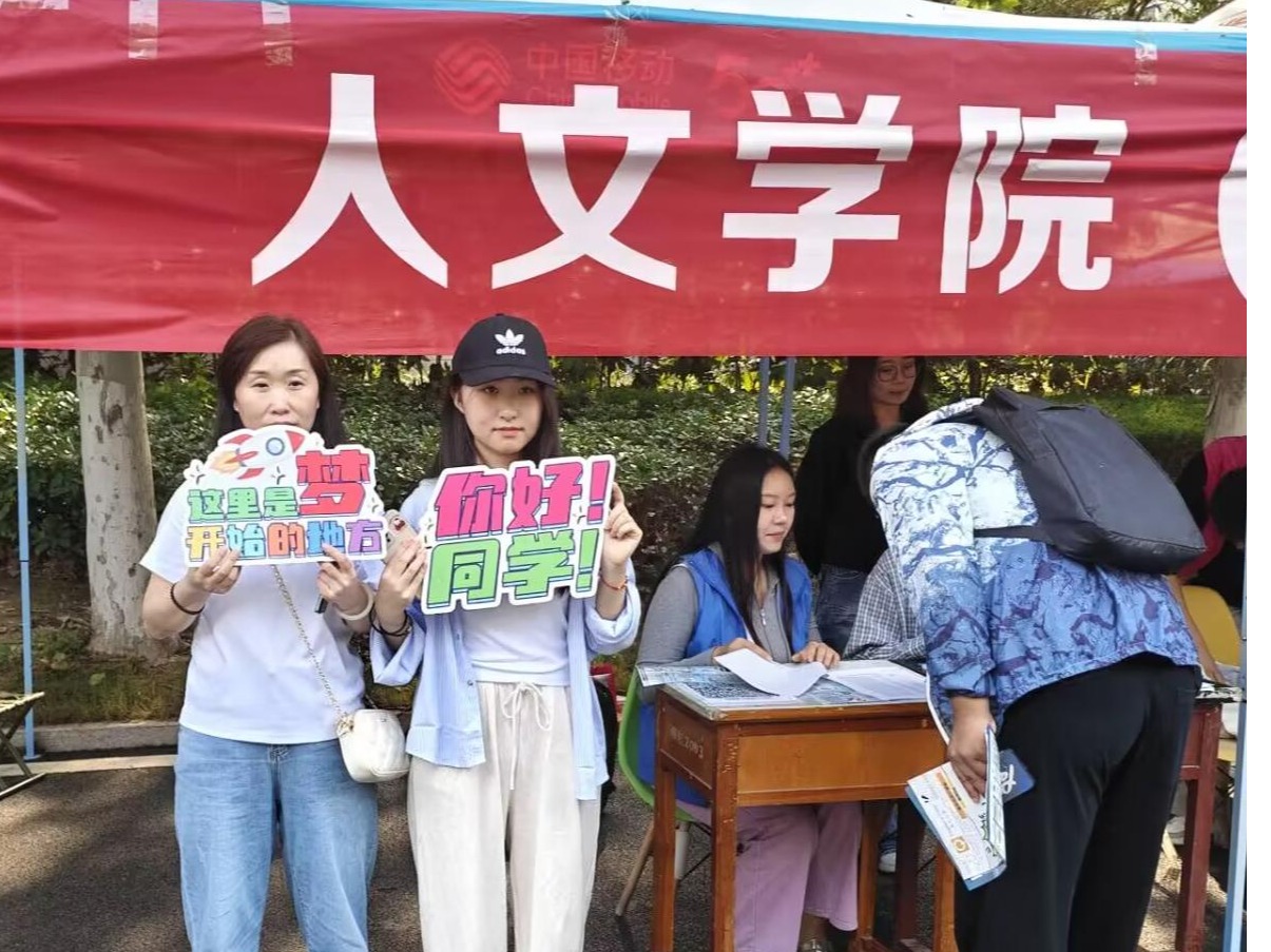 校园内彩旗飘扬,横幅高挂,处处洋溢着热烈的迎新氛围