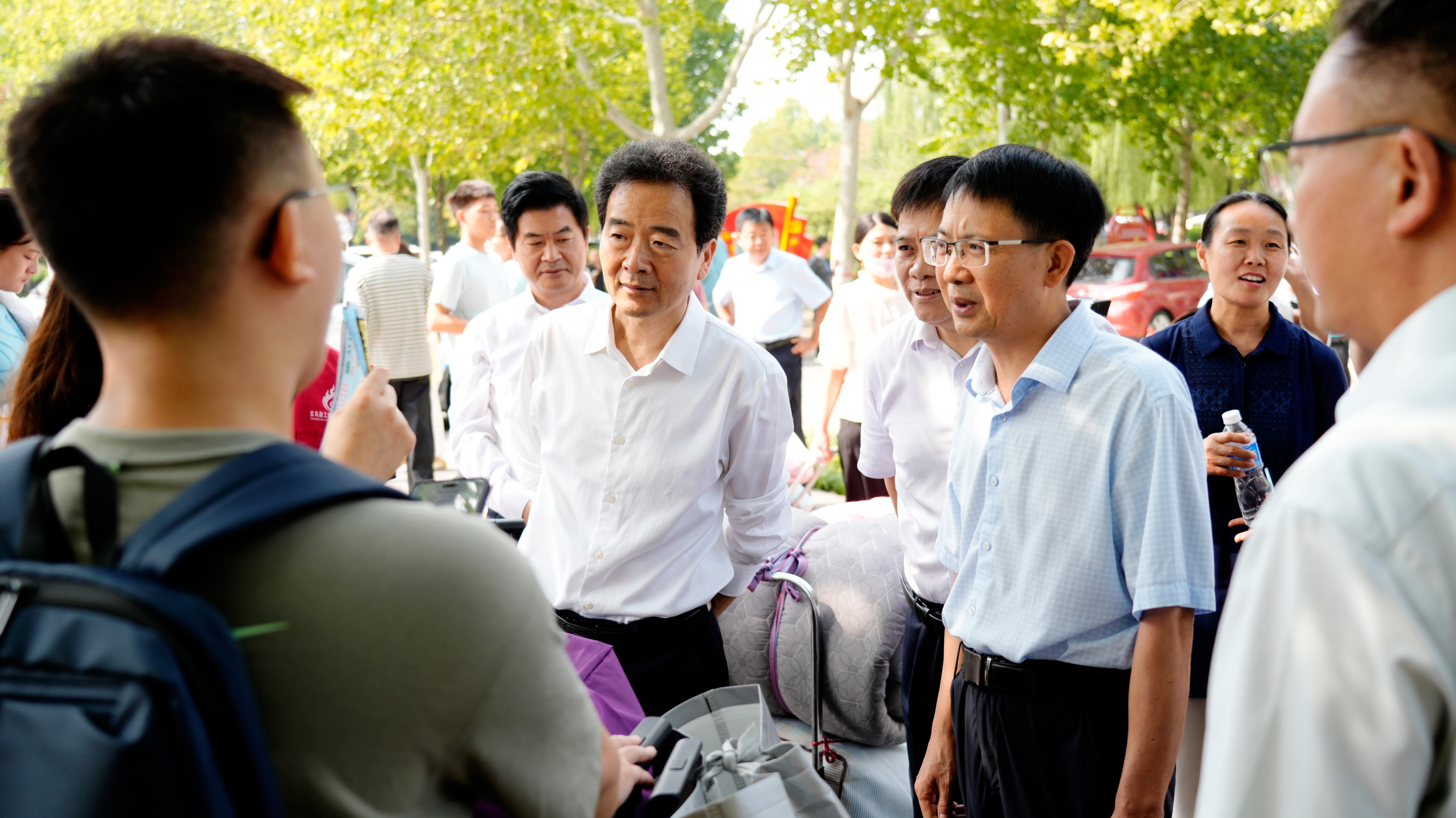 校领导张尚字、陈向炜、刘国庚、吴金山、王晓征、翟滨、刘澜涛深入迎新一线,检查指导各项工作,并亲切看望新生及家长。相关职能部门负责人陪同。校领导先后走访各迎新接待点,细致了解新生报到、绿色通道办理、交通疏导和宿舍入住等环节,与远道而来的学生及家长亲切交流,向他们表示热烈欢迎,并关心询问入学体验和实际需求,认真听取对学校工作的意见与建议。校领导勉励新同学尽快适应大学生活,秉承“应天归德,智圆行方”的校训,树立远大理想,脚踏实地、坚韧奋进,努力成长为堪当民族复兴大任的时代新人。