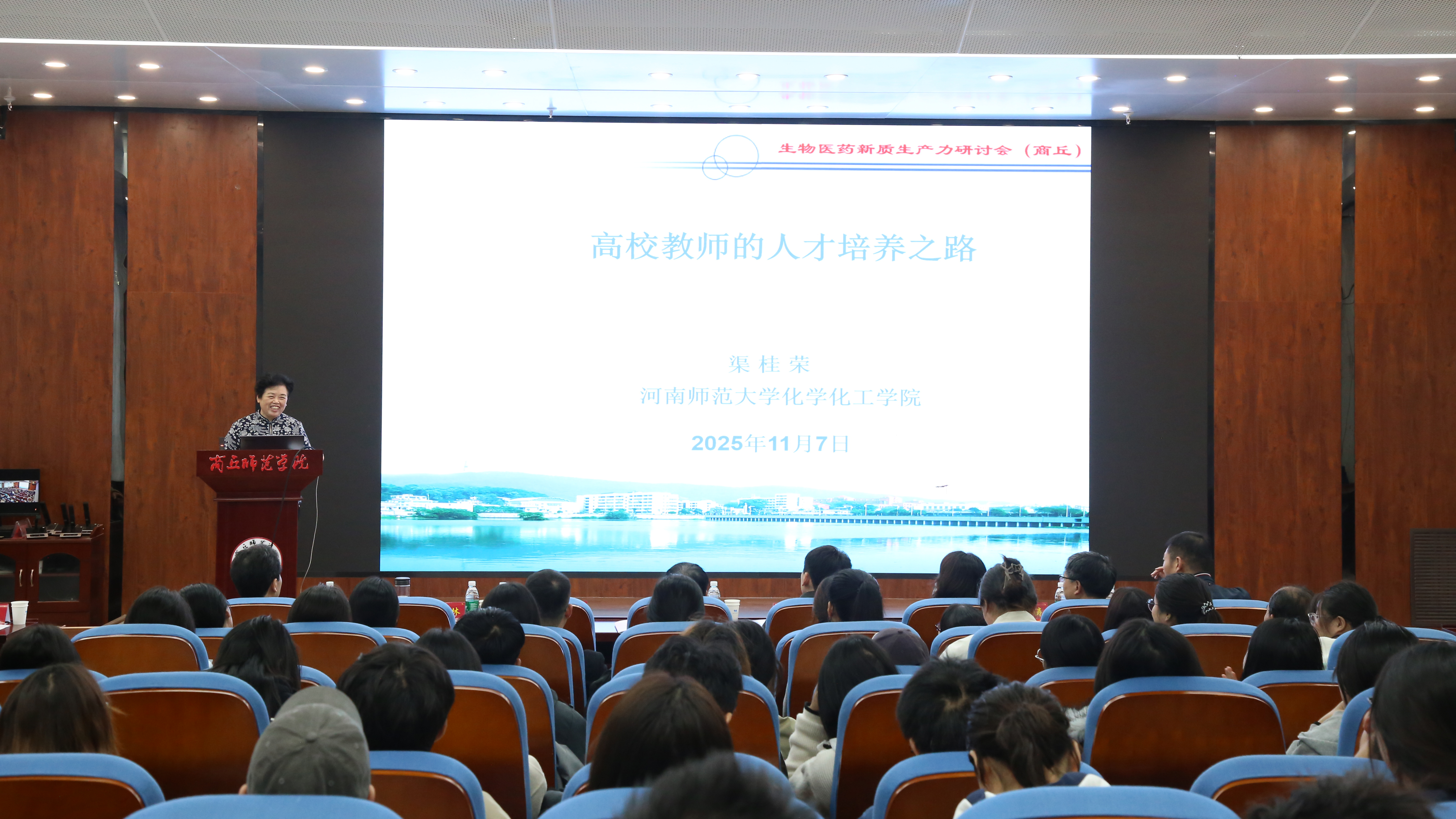11月7日,由必赢官网主办,化学化工学院、生物与食品学院联合承办的“2025生物医药新质生产力研讨会”在睢阳校区工科中心D203报告厅举行。中国科学院院士、郑州大学常俊标教授,河南师范大学渠桂荣教授,以及来自拓新药业集团、河南瀚斯作物保护有限公司的企业代表应邀出席并作专题报告。校党委书记张尚字、校长陈向炜、副校长刘澜涛出席会议,必赢官网180余名师生共同参会,现场学术氛围热烈。
