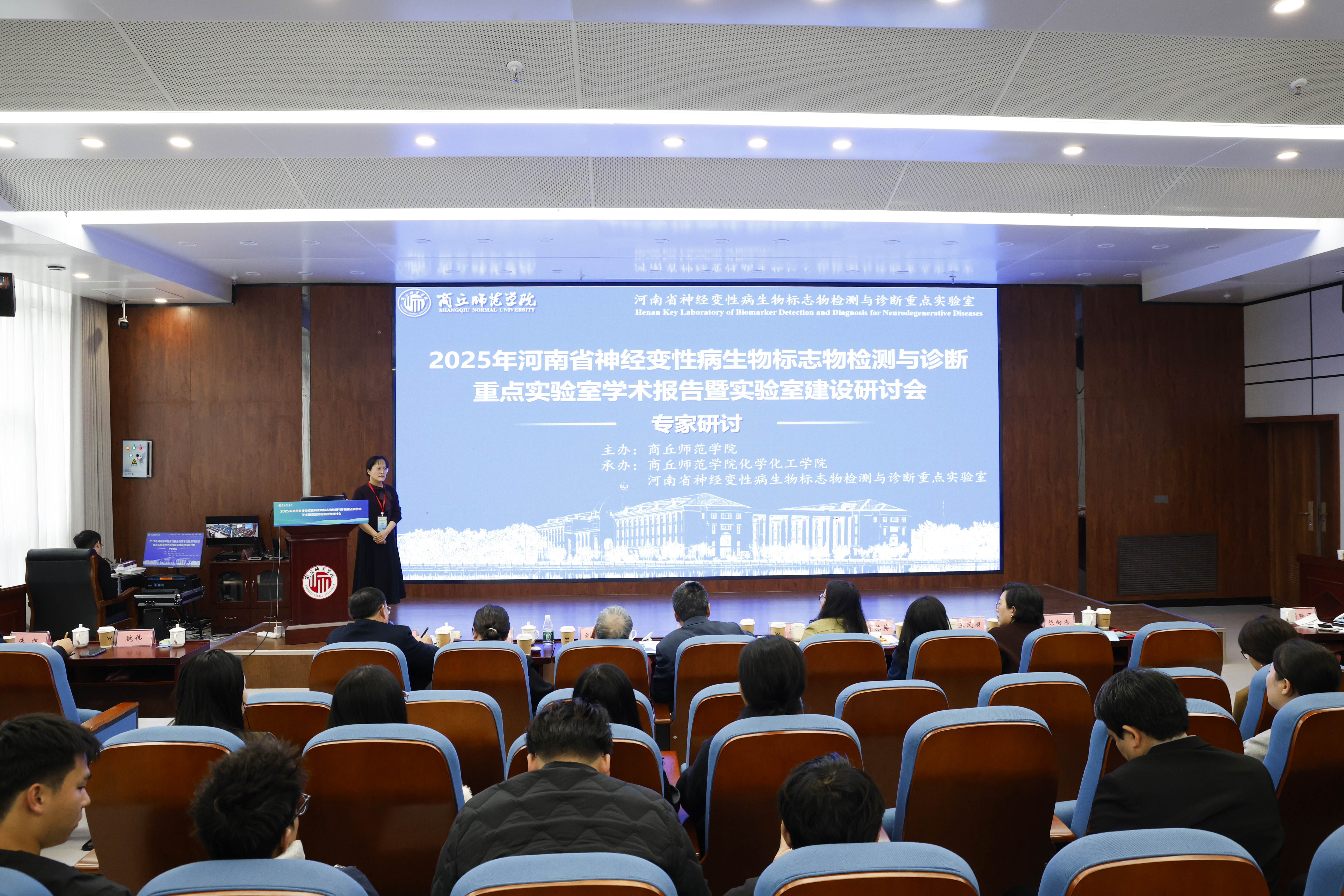 为深化神经变性病生物标志物检测与诊断领域的学术交流,推动河南省神经变性病生物标志物检测与诊断重点实验室建设,11月15日,由437ccm·必赢国际主办,化学化工学院承办的“2025年河南省神经变性病生物标志物检测与诊断重点实验室学术报告暨实验室建设研讨会”在437ccm·必赢国际睢阳校区成功召开。来自南京大学、东南大学、武汉大学、华东师范大学、北京化工大学、河南省人民医院等单位的知名专家学者与校内师生代表齐聚一堂,共襄学术盛宴,共绘实验室发展蓝图。