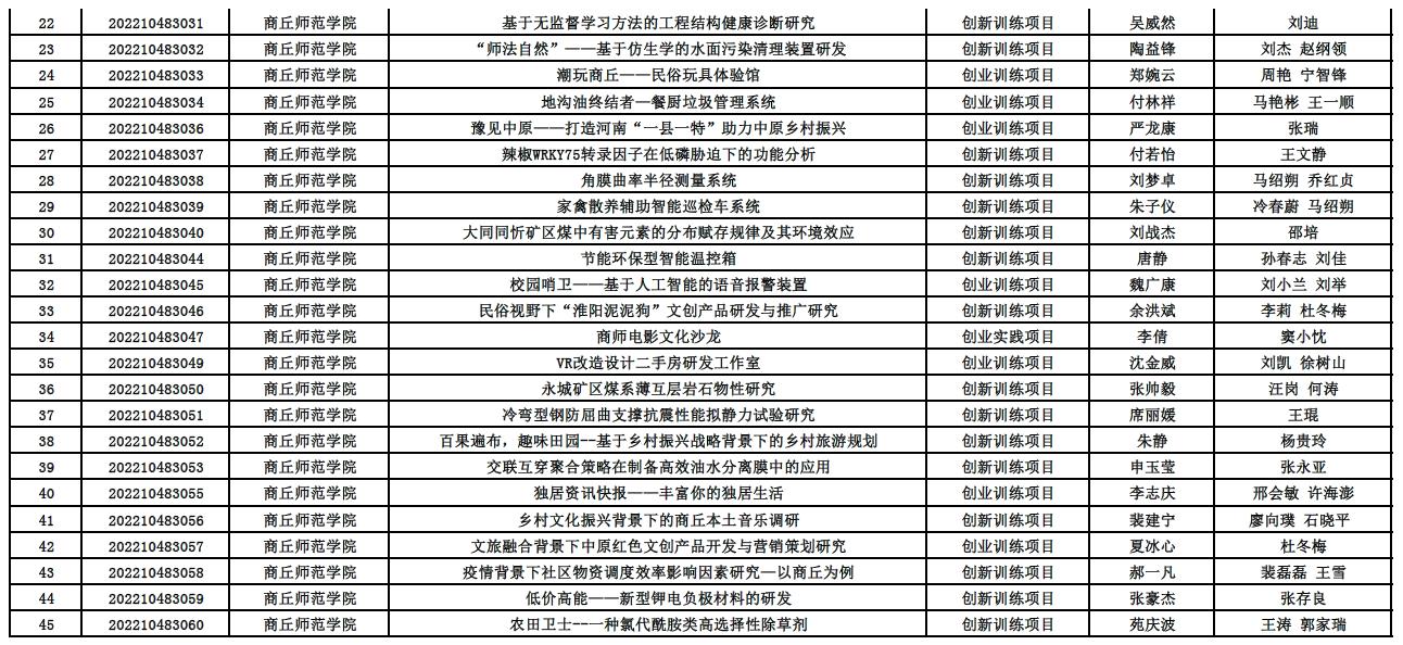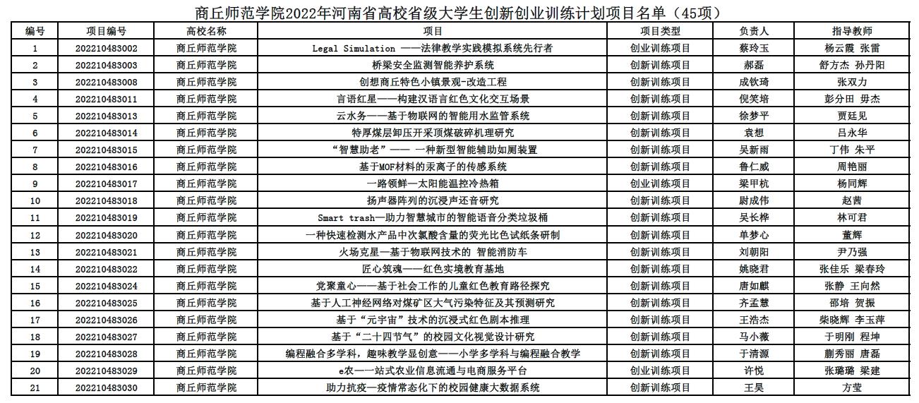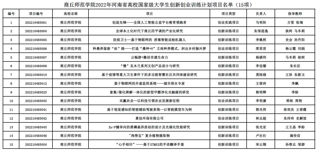 自今年4月启动大学生创新创业训练计划项目以来,校领导高度重视,创新创业教育与就业指导服务中心按照《河南省教育厅办公室关于开展2022年大学生创新创业训练计划立项和结题验收的通知》(教办高〔2022〕135号)文件精神积极动员,精心组织,层层选拔,严格把关。最终,必赢官网遴选出的60个项目获批2022年国家级和省级大学生创新创业训练计划项目,获批项目数再创新高。