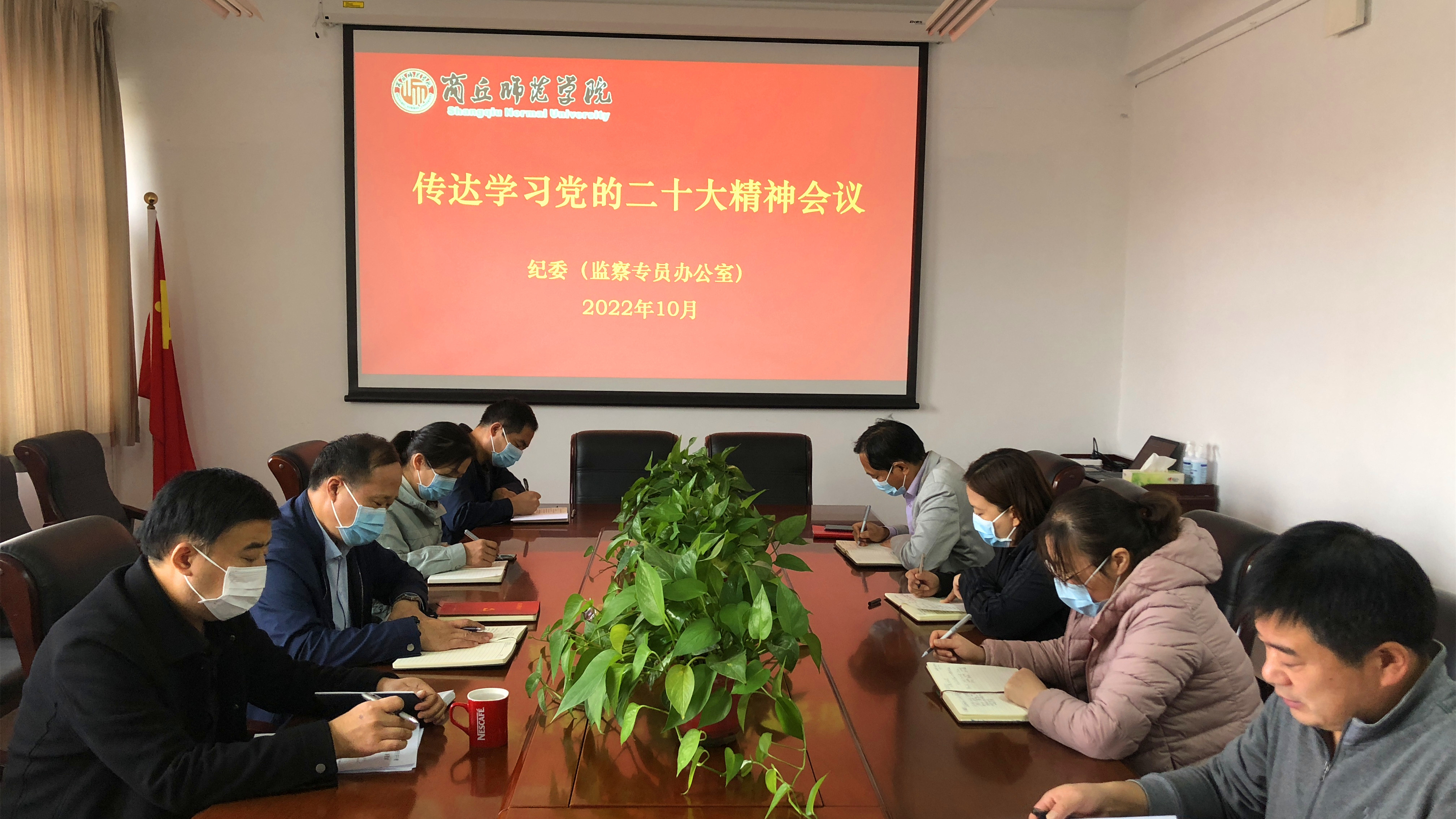 10月25日,校纪委(监察专员办公室)召开专题会议,传达学习党的二十大精神,结合必赢官网纪检监察工作实际,交流学习体会,研究部署学习宣传和贯彻落实工作。全体专职纪检监察干部参加了会议。校纪委副书记陈东主持会议。