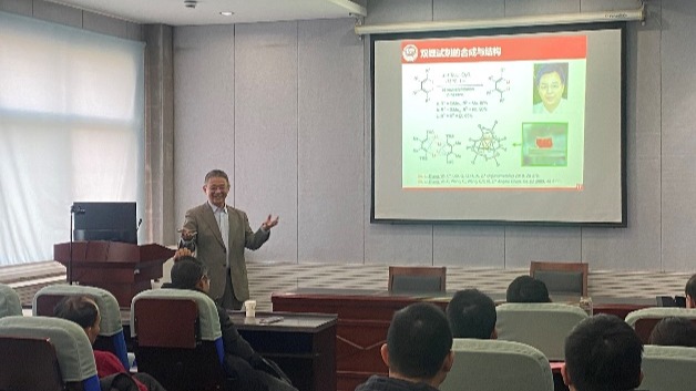 张文雄教授的报告题目是《白磷的活化与转化化学》。张教授对稀土金属有机化合物的反应类型、选择性和底物范围作了详细介绍。他还阐述了课题组的科研思路:建立简单、高效的合成方法,创建新的稀土金属杂环化合物;结构表征及阐明其成键模式,并发现新的反应性和催化功能;通过反应活性中间体的分离和结构表征,结合计算化学,阐明反应机理;基于发现的新反应,结合国家需求,开发关键化学化工产品的新工艺。