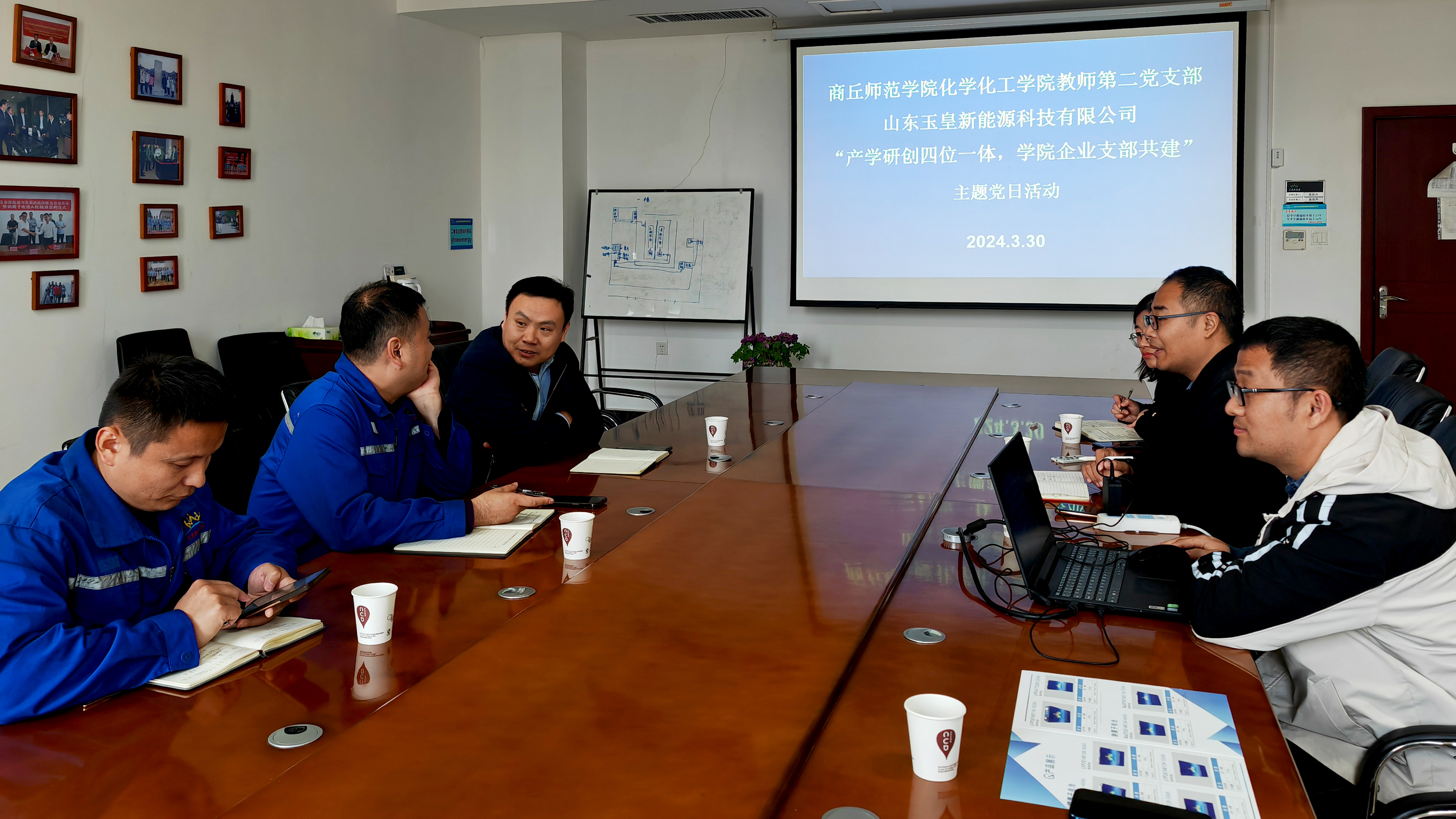 近日,必赢官网国家样板党支部化学化工学院教师第二党支部一行赴山东玉皇新能源科技有限公司,开展“产学研创四位一体,学院企业支部共建”主题党日活动。此次活动旨在加强学院与企业之间的深度合作,推动产学研创深度融合,为新能源领域的发展贡献智慧和力量。