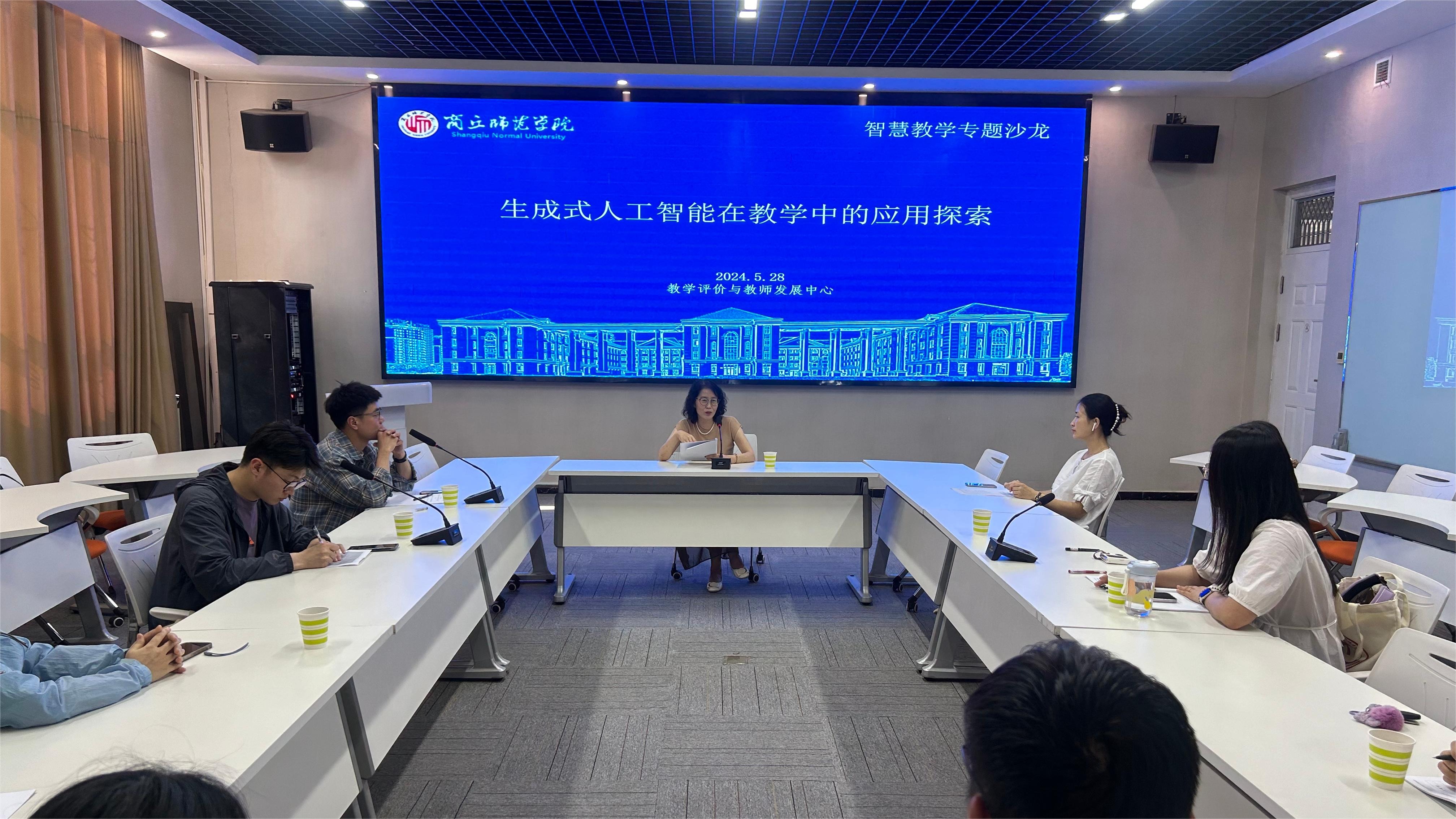 5月28日,必赢官网举办智慧教学专题沙龙会,邀请“商丘师院设计教学团队(SQNUTDTL)”成员陈丽娜教授以《生成式人工智能在教学中的应用探索》为题作分享。