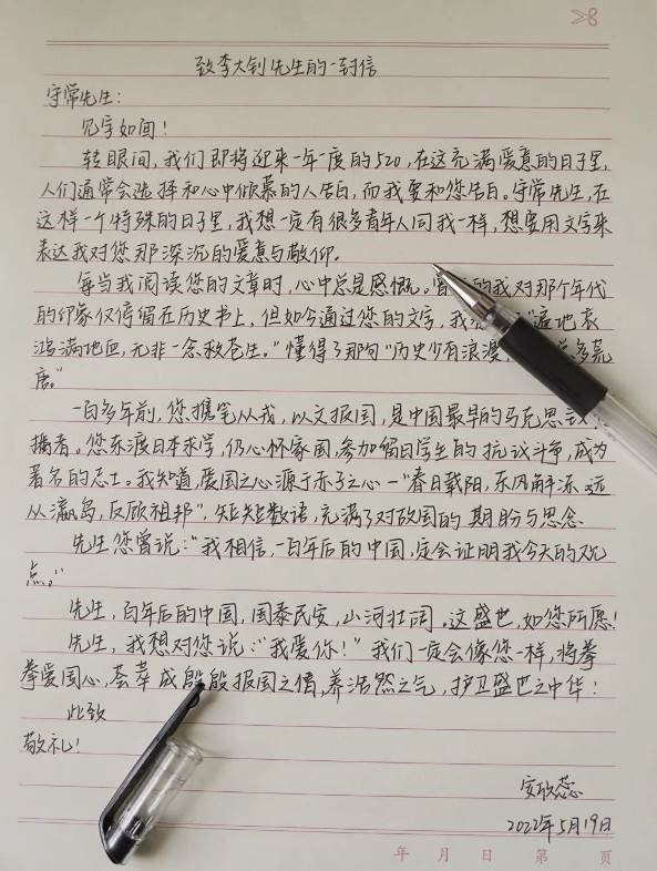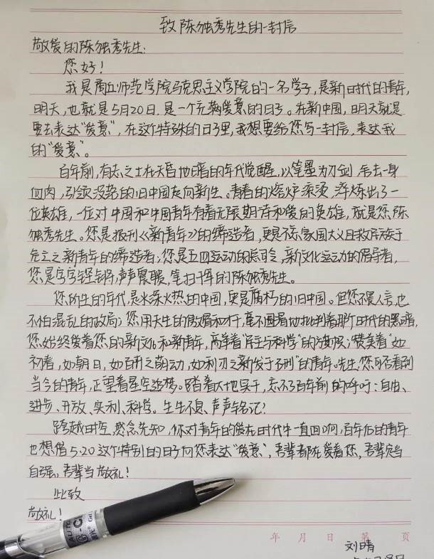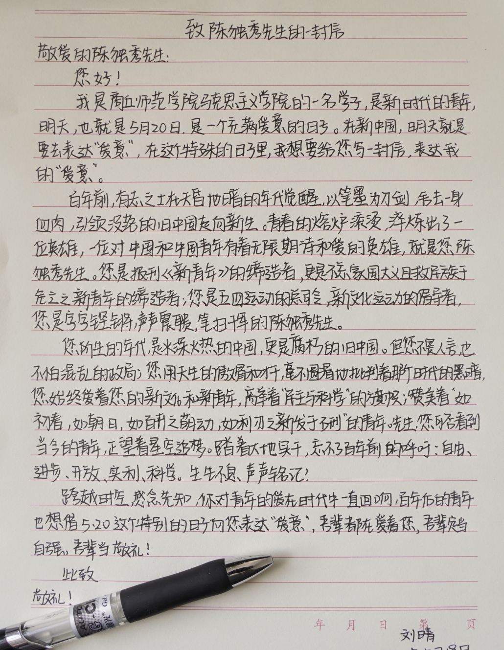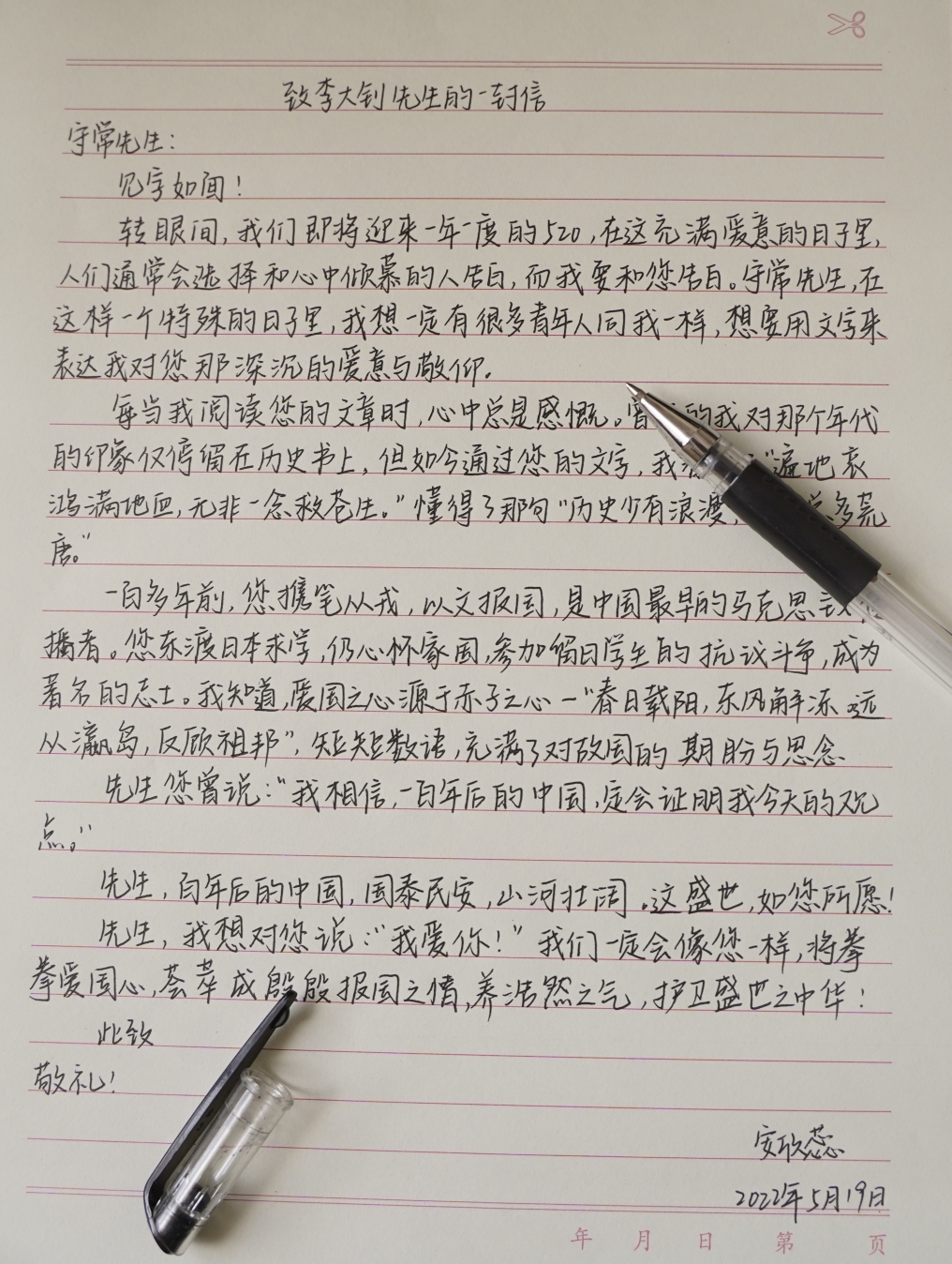521,我爱你!封封红信,颗颗红心。437ccm·必赢国际马克思主义学院学生以手书一封信的形式致信,响亮说出“我爱你”