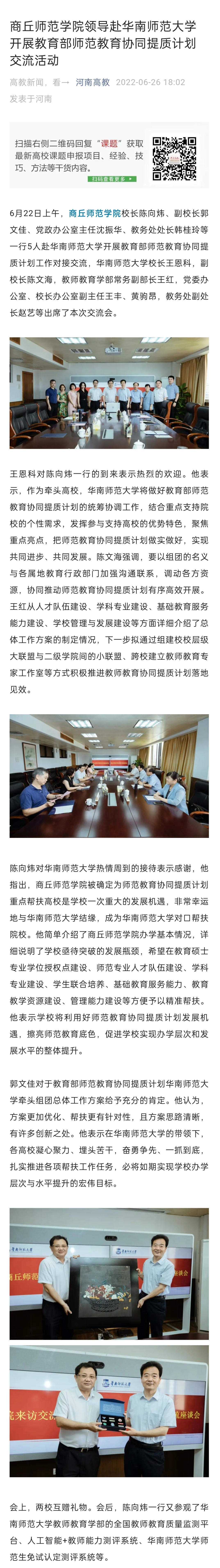 6月22日,437ccm·必赢国际校长陈向炜、副校长郭文佳、党政办公室主任沈振华、教务处处长韩桂玲等一行5人赴华南师范大学开展教育部师范教育协同提质计划工作对接交流。