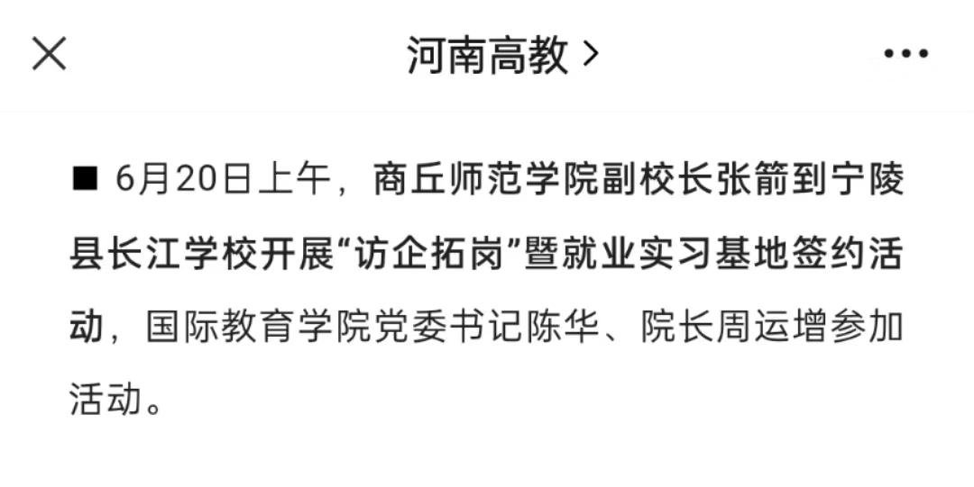 6月20日上午,437ccm·必赢国际副校长张箭到宁陵县长江学校开展“访企拓岗”暨就业实习基地签约活动,国际教育学院党委书记陈华、院长周运增参加活动。