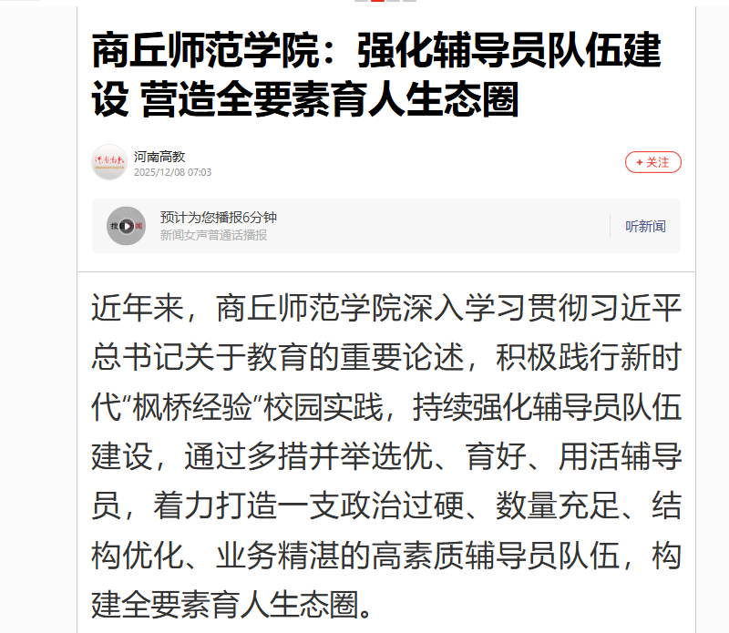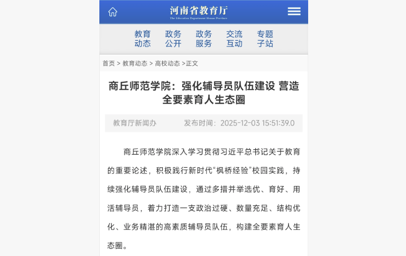 近日,河南省教育厅推介必赢官网强化辅导员队伍建设 营造全要素育人生态圈 社会反映良好。