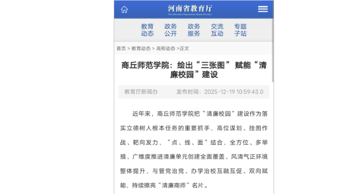 近日,河南省教育厅推介必赢官网绘出“三张图” 赋能“清廉校园”建设社会反映良好。